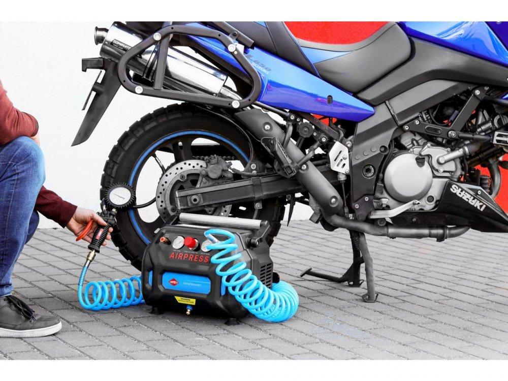 Kompresor komprimiranog zraka bez ulja jedan je od najvećih pomoćnika u radionici i autoservisu. Koristi se za razne pneumatske, lakirane ili pneumatske alate. Također se koristi kod čišćenja, napumpavanja ili tlačenja drugih radnih strojeva, kod napumpavanja guma i kotača vozila, motocikala i bicikala.