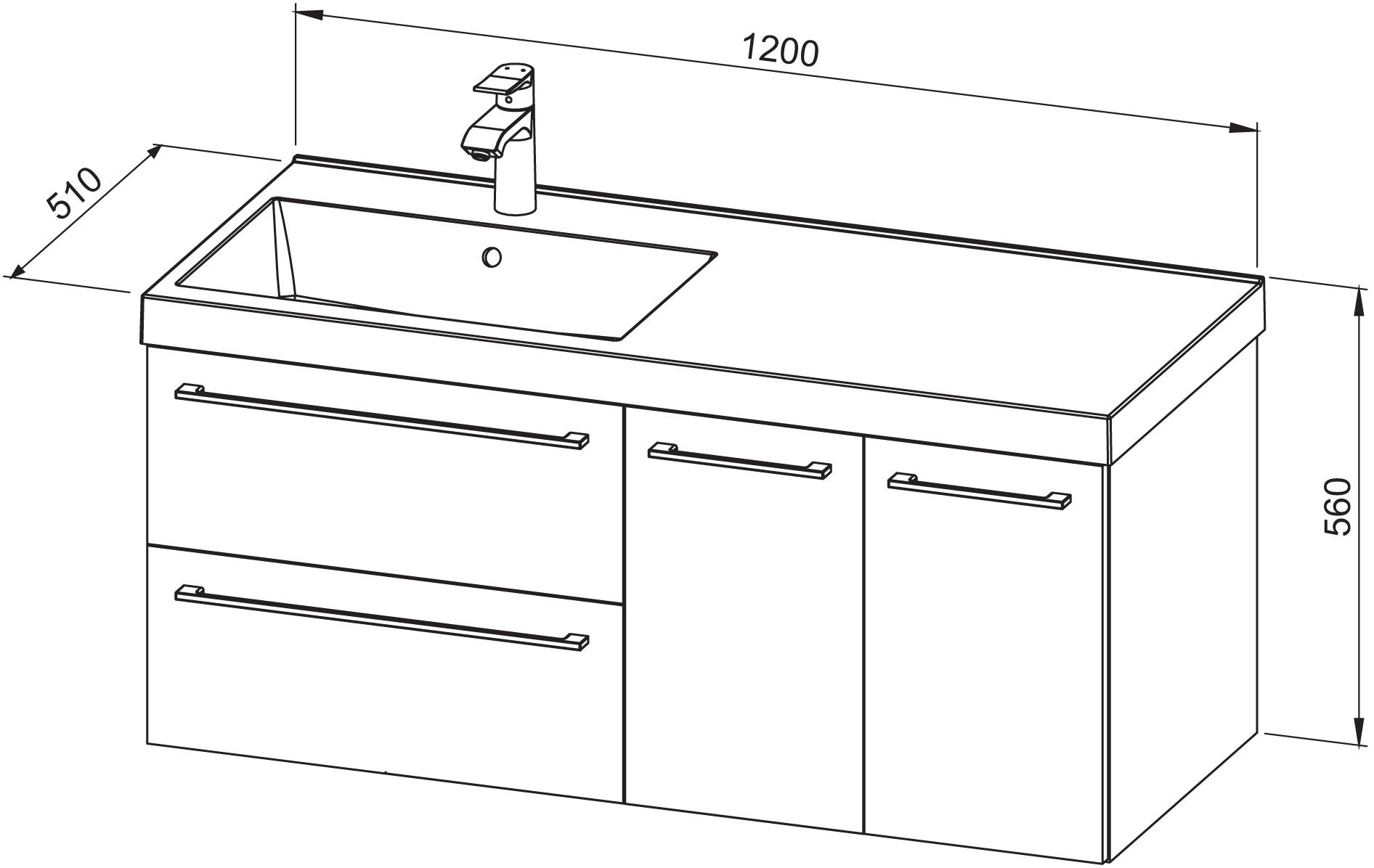 AQUAESTIL Baza ARWEN 120 L s umiv, 2V., 2L., crna akril VS