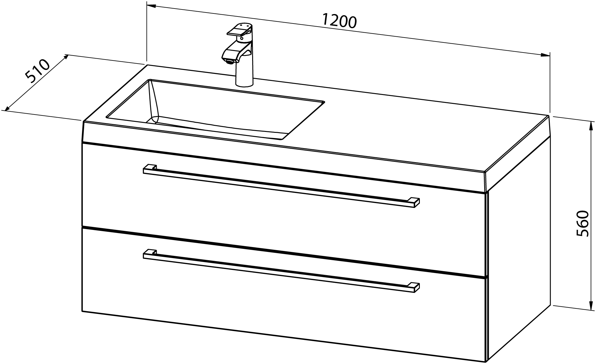 AQUAESTIL Baza ARWEN 120 s umivaonikom LIJEVI, 2 ladice, crna mat 811,25 € 649,00 €/KOM