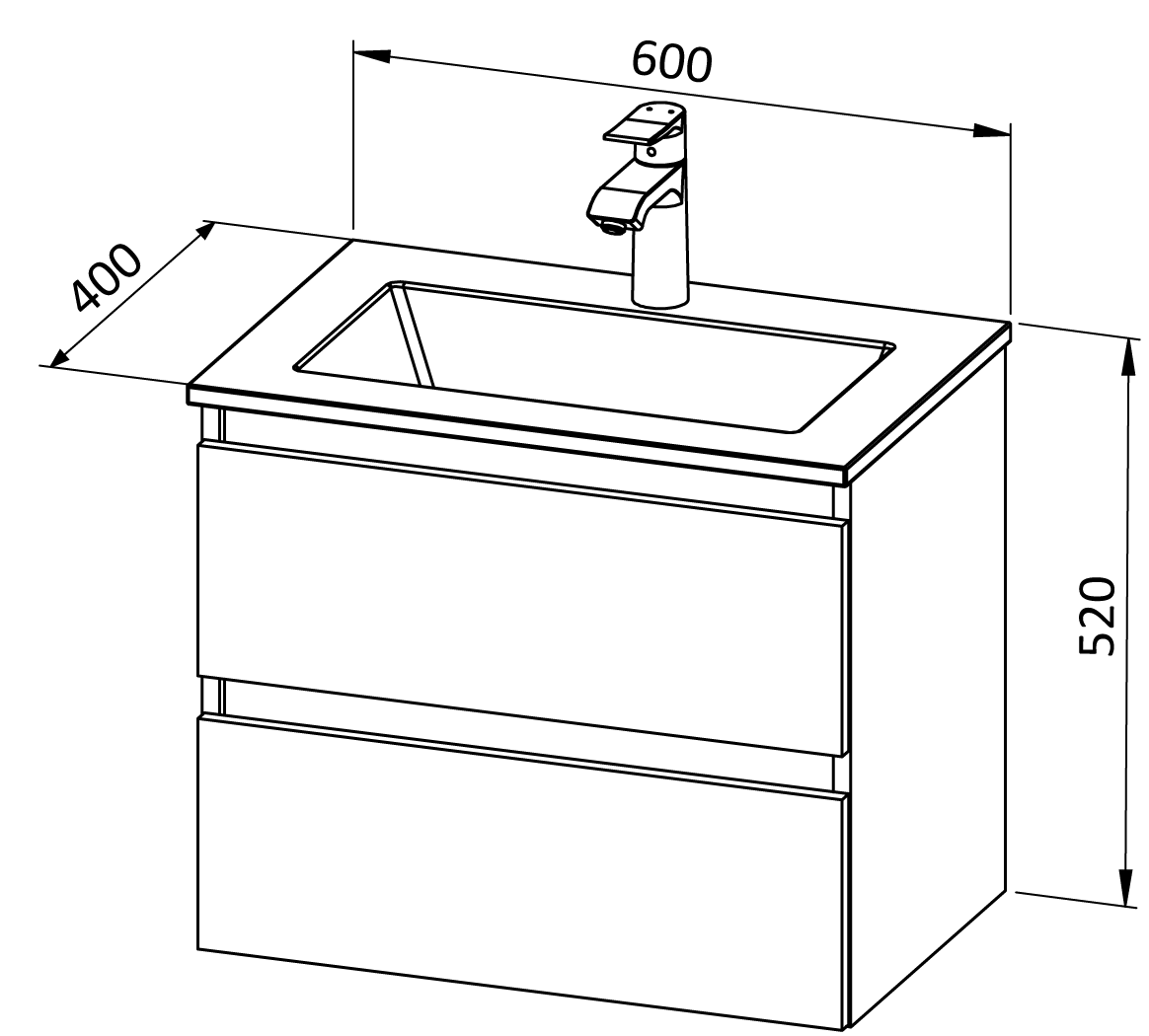 GERDA BAZA Š65 VISEĆI ELEMENT-2LADICE-FRONTA PIRAMIDE -bez umivaonika
