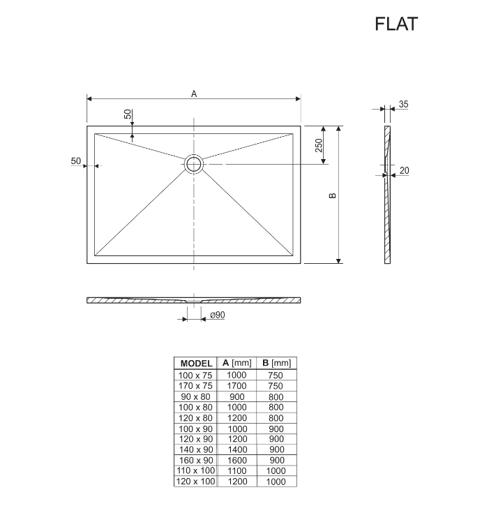 Flat je izrazito plitka tuš kada izrađena od lijevanog mramora i prvenstveno je namijenjena ugradnji u razinu poda. Materijal od kojeg je izrađena daje joj nenadmašnu čvrstoću i sjajnu površinu koja se lako čisti i održava. Tuš kada je dostupna u bijeloj i crnoj boji u sjajnom efektu.