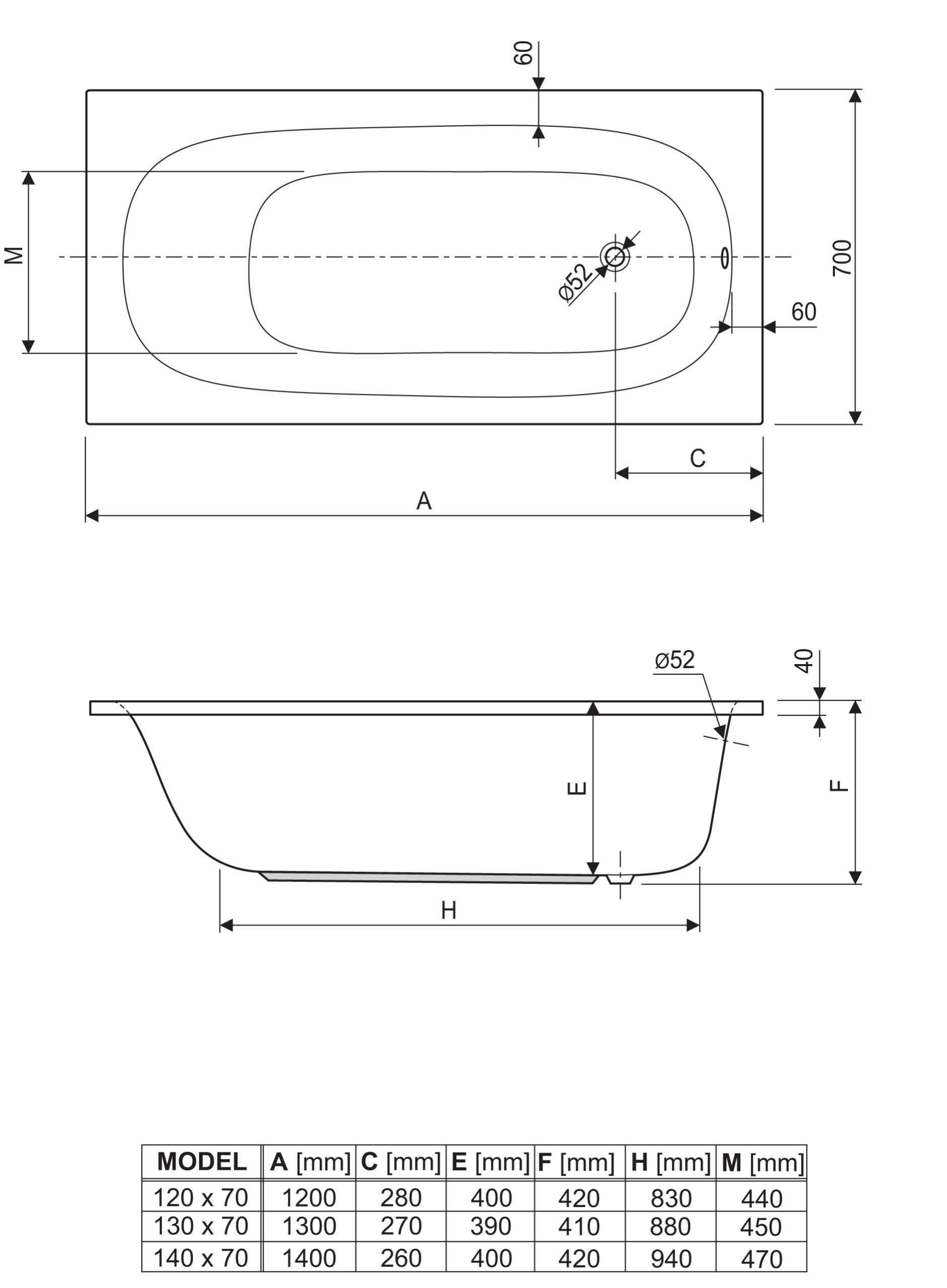 Ova pravokutna kupaonska kada vrlo jednostavnih i skladnih linija dostupna je u puno različitih dimenzija što ju čini pogodnom za ugradnju u gotovo sve kupaonice.