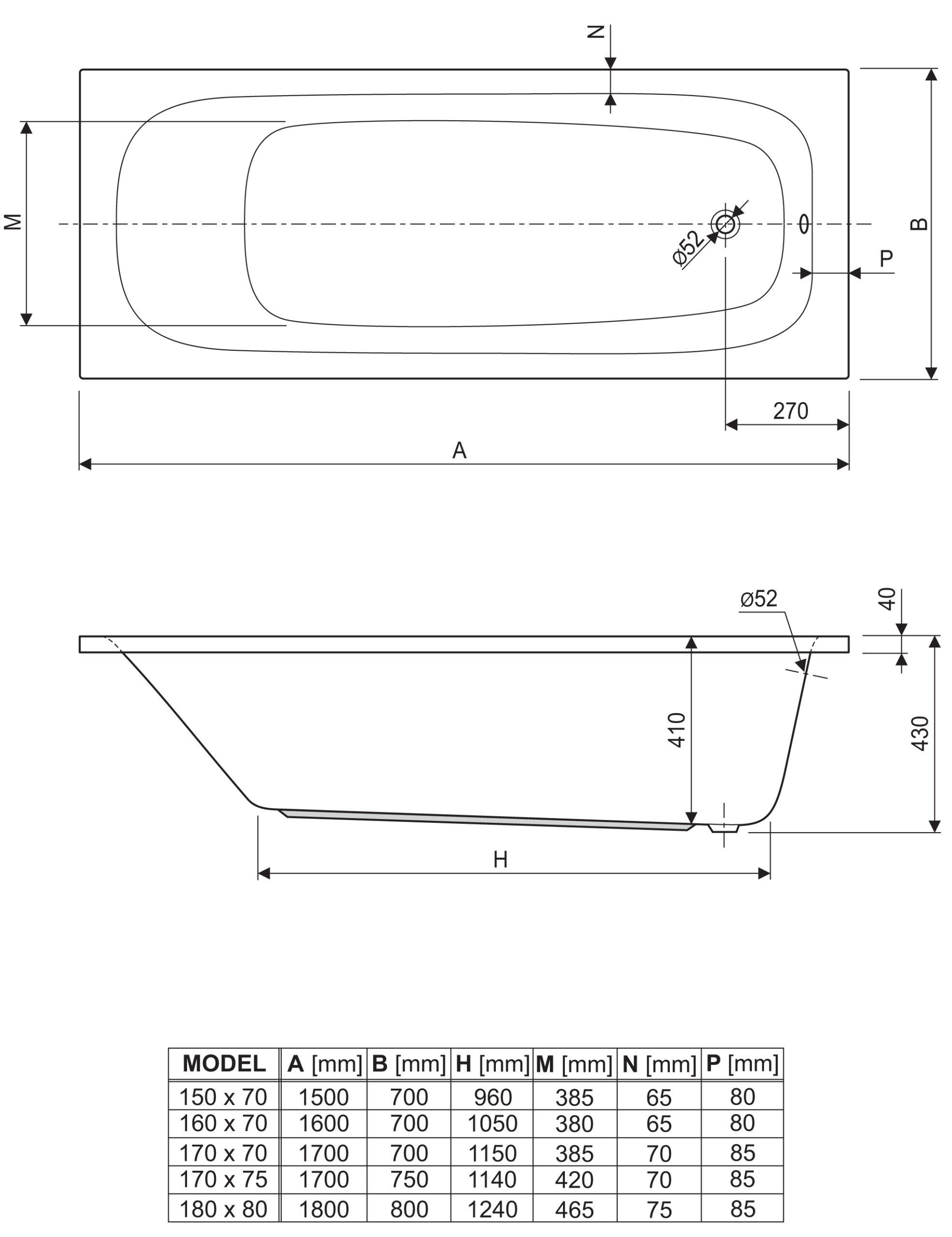 ELEGANT 170L/O AKRILNA KADA 1700×900 mm