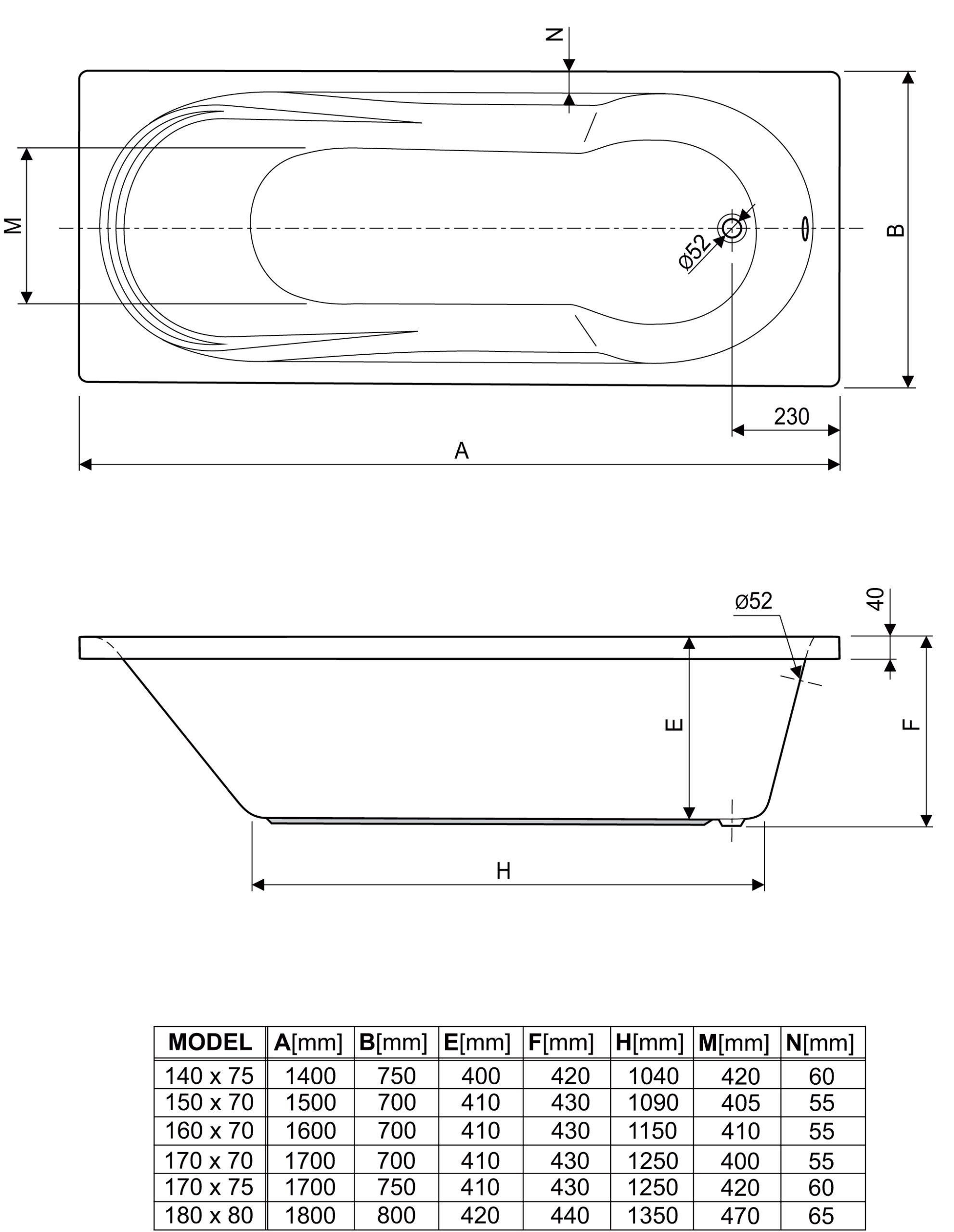 ARMAL DORIS OBIČNA LEŽEĆA KADA 170X75 DORIS15