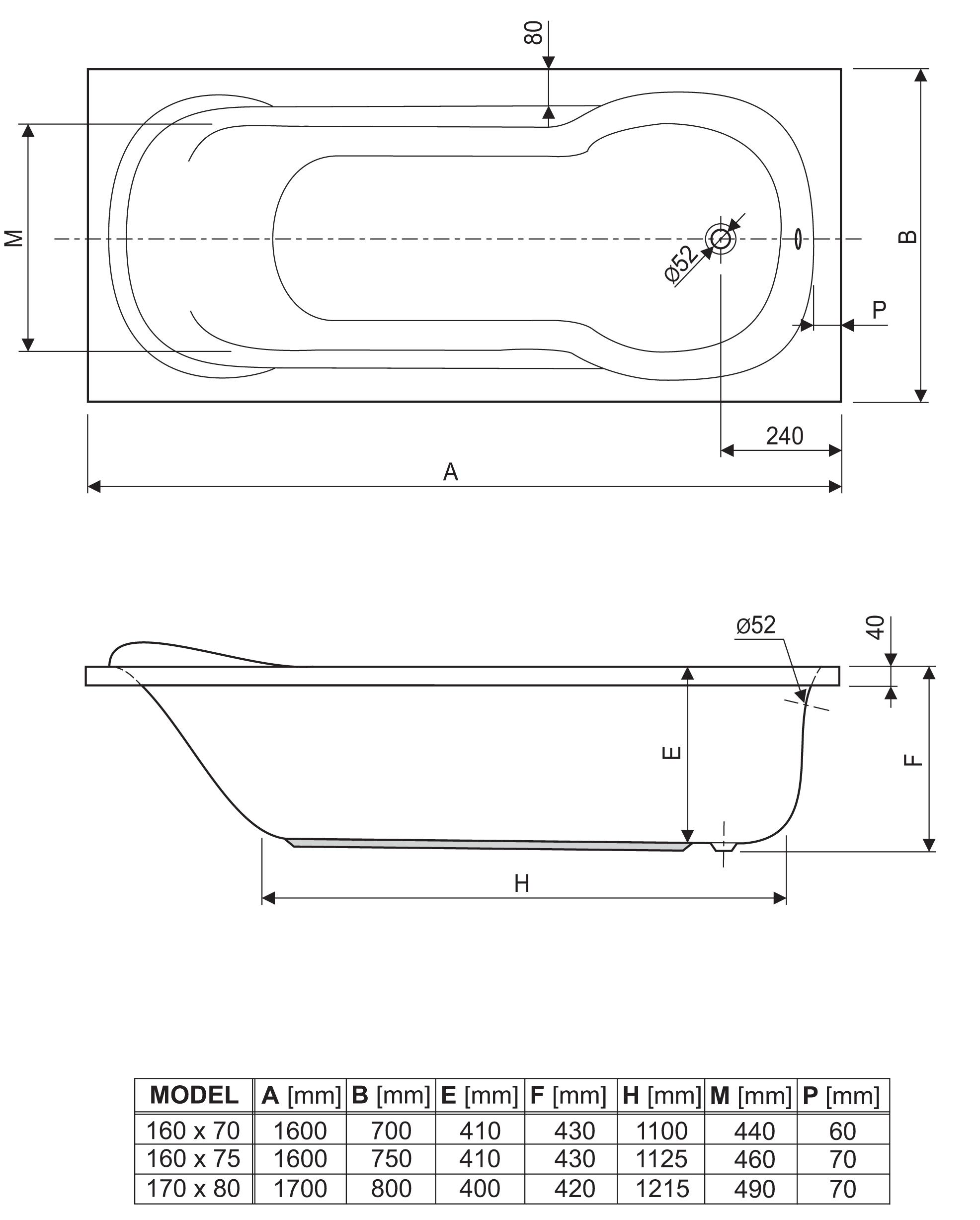 Sava je ergonomska kada s ugrađenim osloncima za ruke, a dostupna je u tri standardne dimenzije.