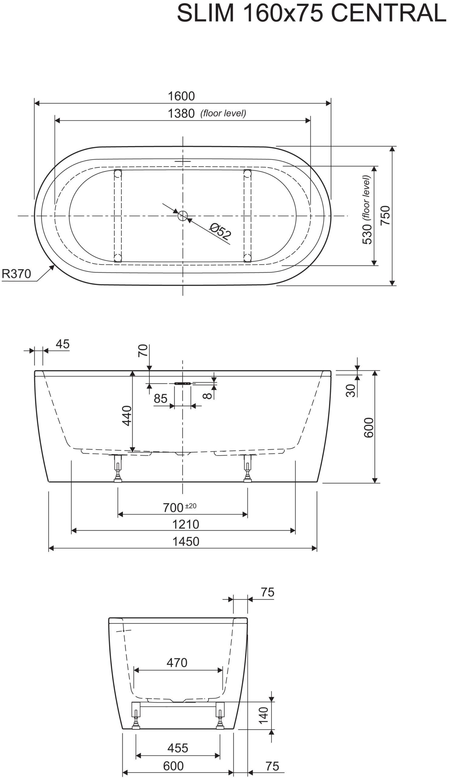 Samostojeća kada Slim Central karakteristična je po elegantnom ovalnom obliku i slot preljevu. Isporučuje se s tvornički montiranom i fiksiranom oblogom, preljevno-otočnom garniturom sa klik-klak ventilom i gibljivim crijevom za spoj na odvod. Kod montaže dovoljno je spojiti gibljivo crijevo na odvod, učvrstiti kadu u pod, utočiti vodu i kada je spremna za kupanje!