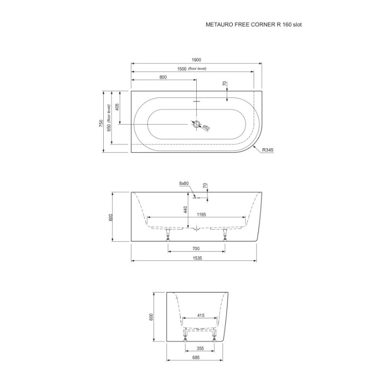 Na slici je prikazana obična kade metauro Free sa „slot” preljevom.
