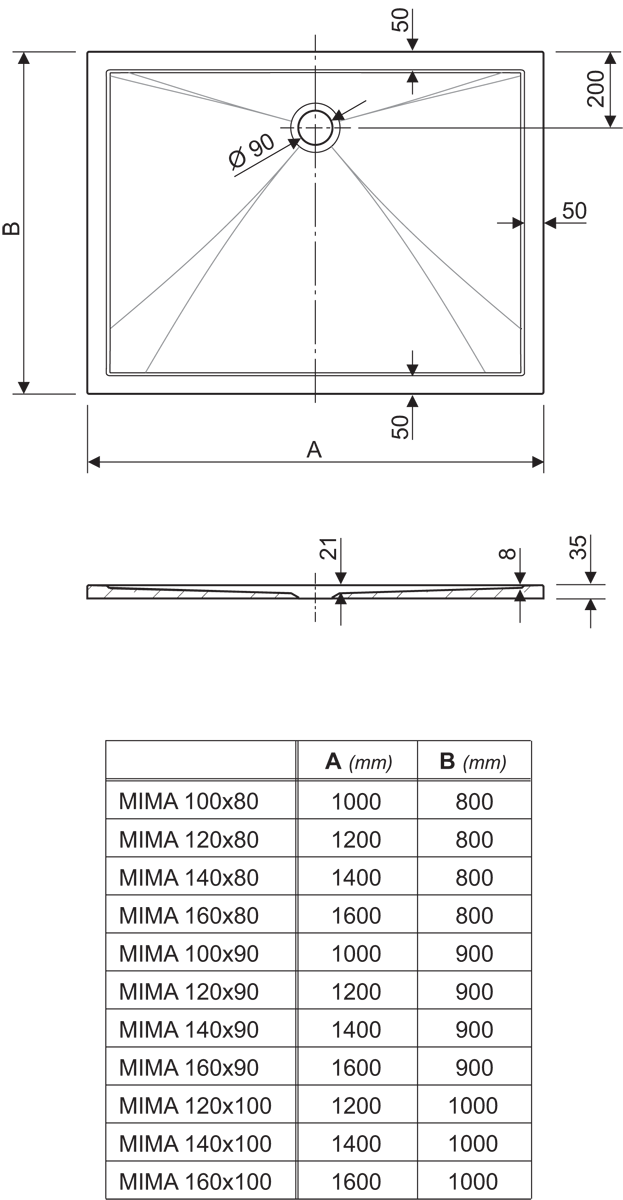 Mima je tuš kada od lijevanog mramora namijenjena prvenstveno ugradnji u razinu poda. Prepoznatljiva je po jednostavnim linijama i klasičnom izvedbom sifona. Tuš kade od lijevanog mramora odlikuju se maksimalnom čvrstoćom i savršenim linijama koje je moguće izvesti zahvaljujući naprednim svojstvima ovog materijala. Površina ovih tuš kada je sjajna i vrlo jednostavna za svakodnevno čišćenje i održavanje.