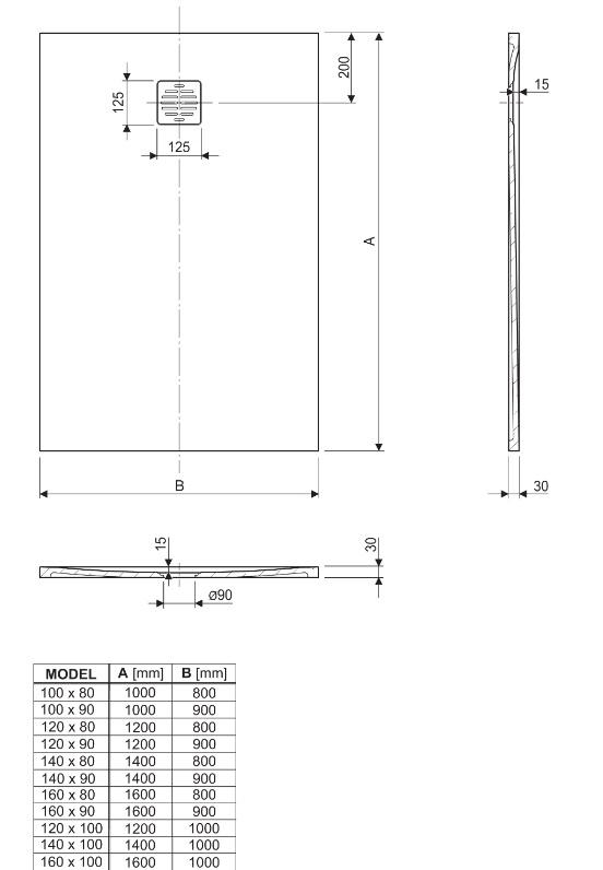 Poziciju sifona za svaku od dimenzija pravokutnih tuš kada Stone provjerite na nacrtima u poglavlju “tehničke informacije”.