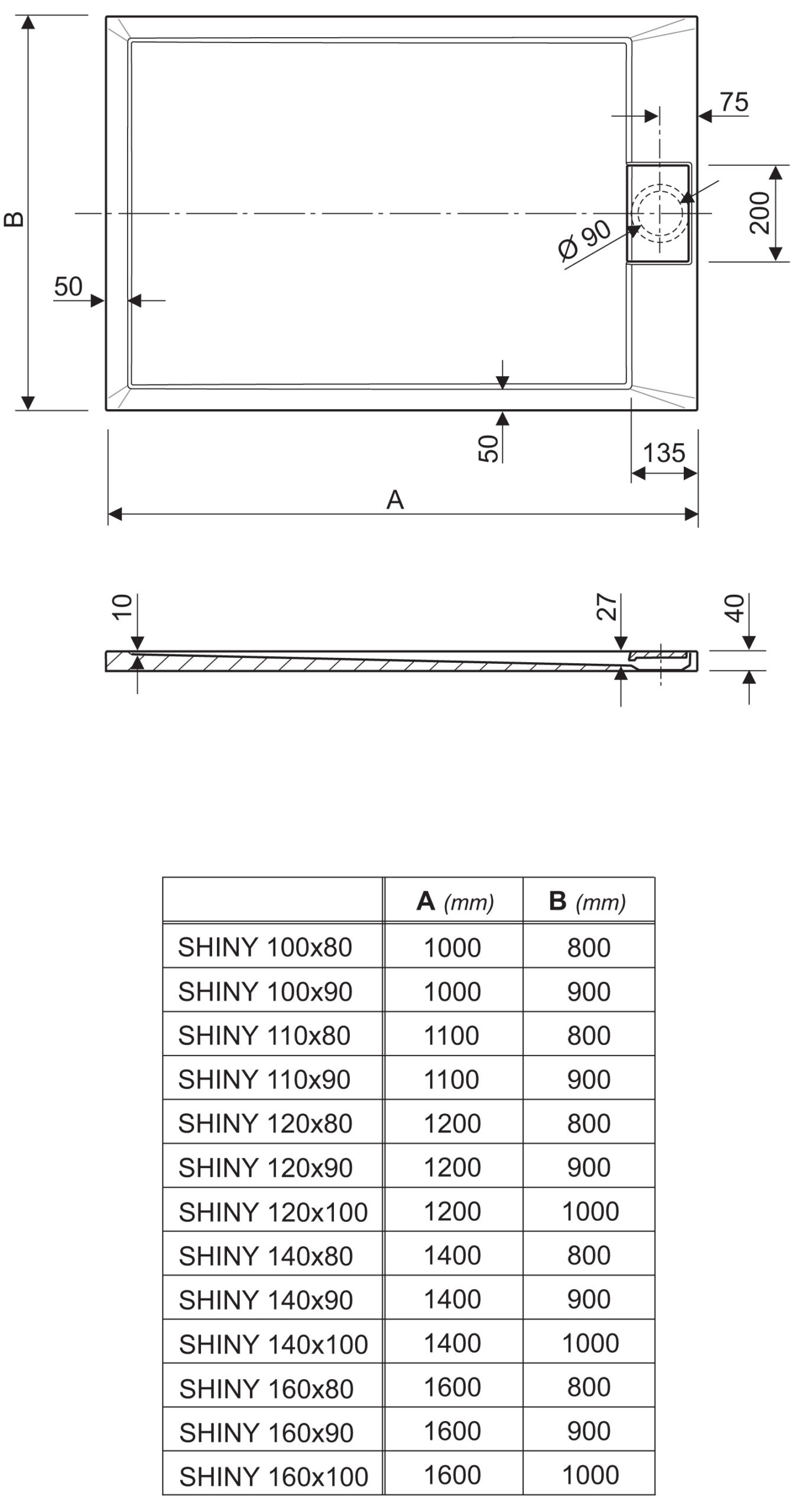 Tuš kada Shiny je karakteristična po posebno izvedenom poklopcu sifona i modernim, oštrim linijama. Tuš kade od lijevanog mramora odlikuju se maksimalnom čvrstoćom i savršenim linijama koje je moguće izvesti zahvaljujući naprednim svojstvima ovog materijala. Površina ovih tuš kada je sjajna i vrlo jednostavna za svakodnevno čišćenje i održavanje.