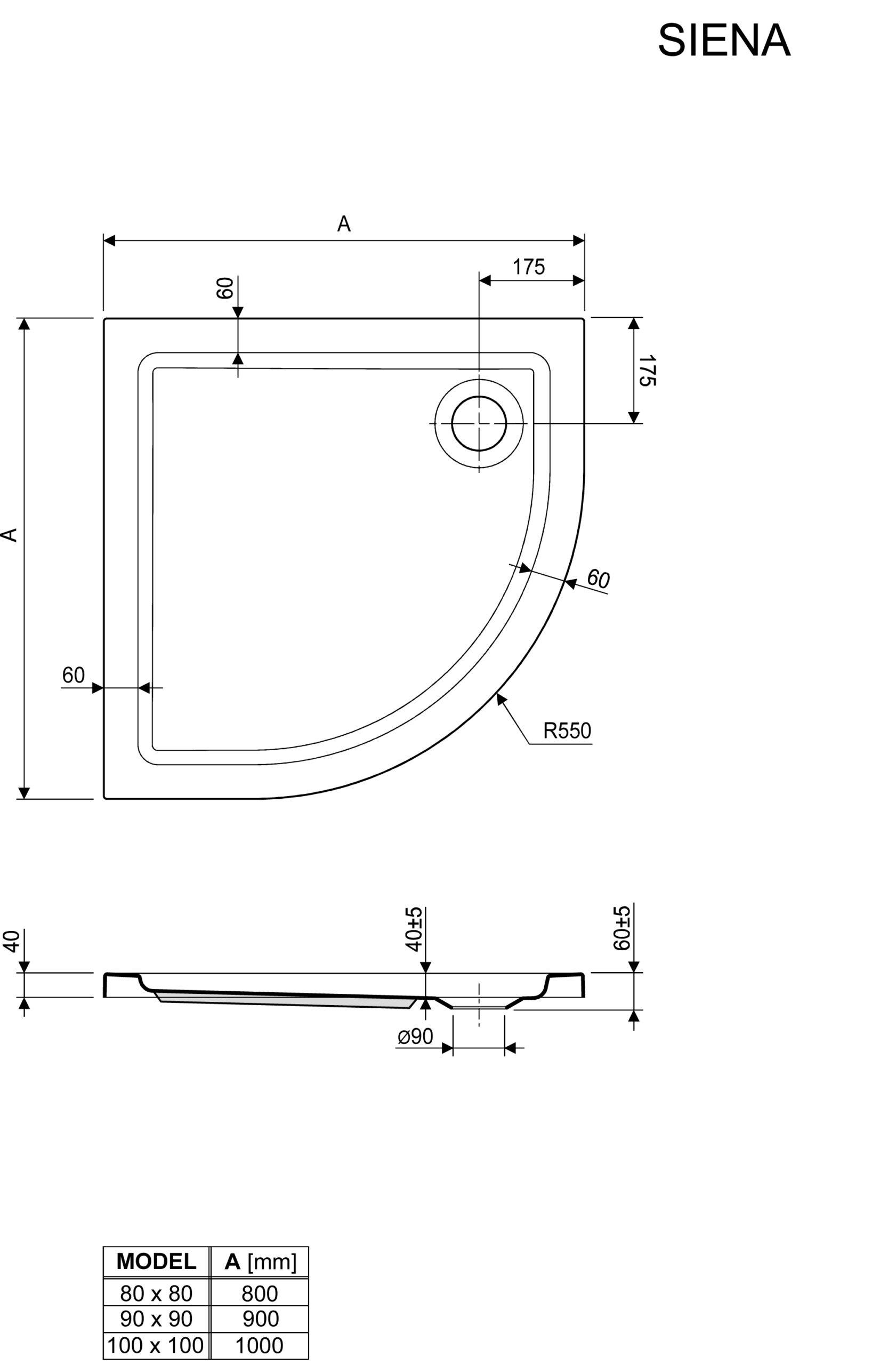 Siena je hibrid klasične i plitke polukružne tuš kada većeg otvora sifona i smanjene dubine što ju čini elegantnom i funkcionalnom. Dostupna je i u varijanti s oblogom.