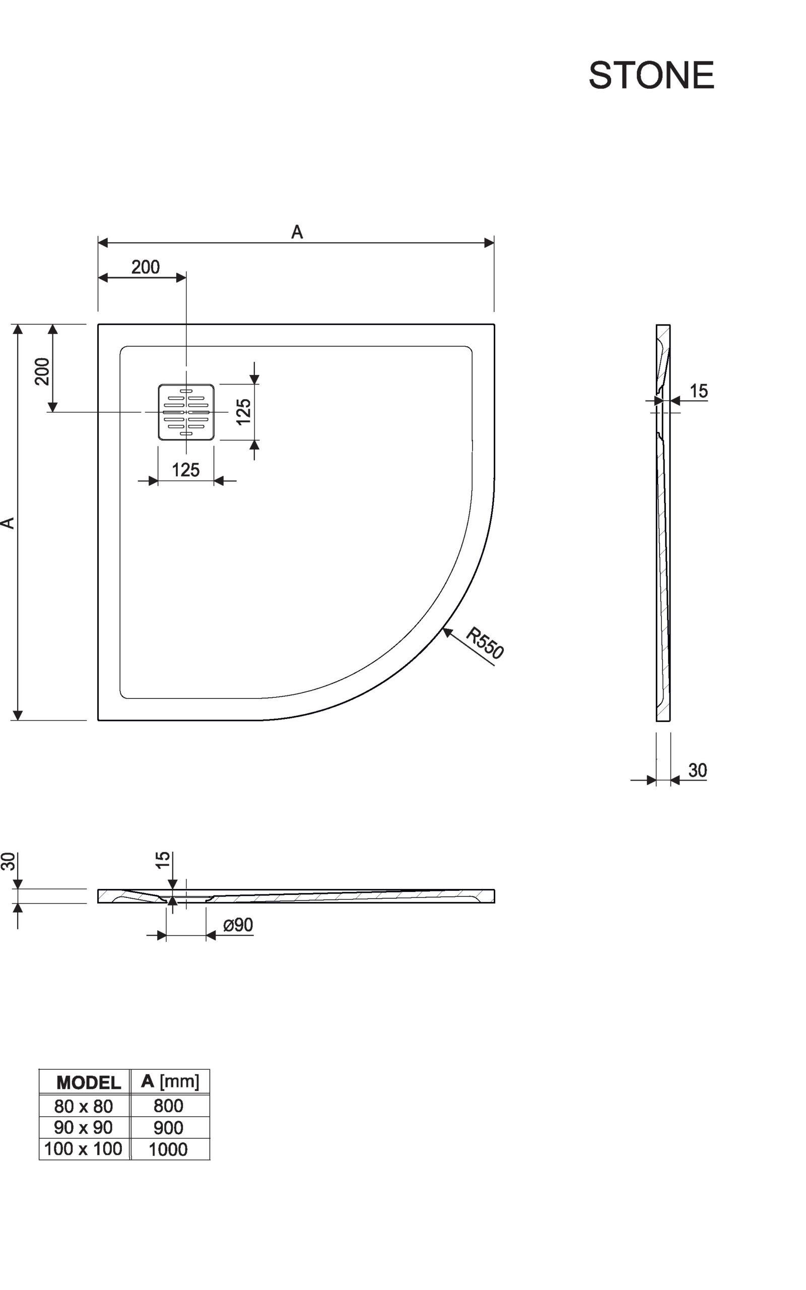 Tuš kade s reljefnom površinom Stone izrađene su od lijevanog mramora koji im daje maksimalnu čvrstoću i otpornost. Ove tuš kade dostupne su u nekoliko standardnih dimenzija i tri različite boje: bijela, crna i cement.