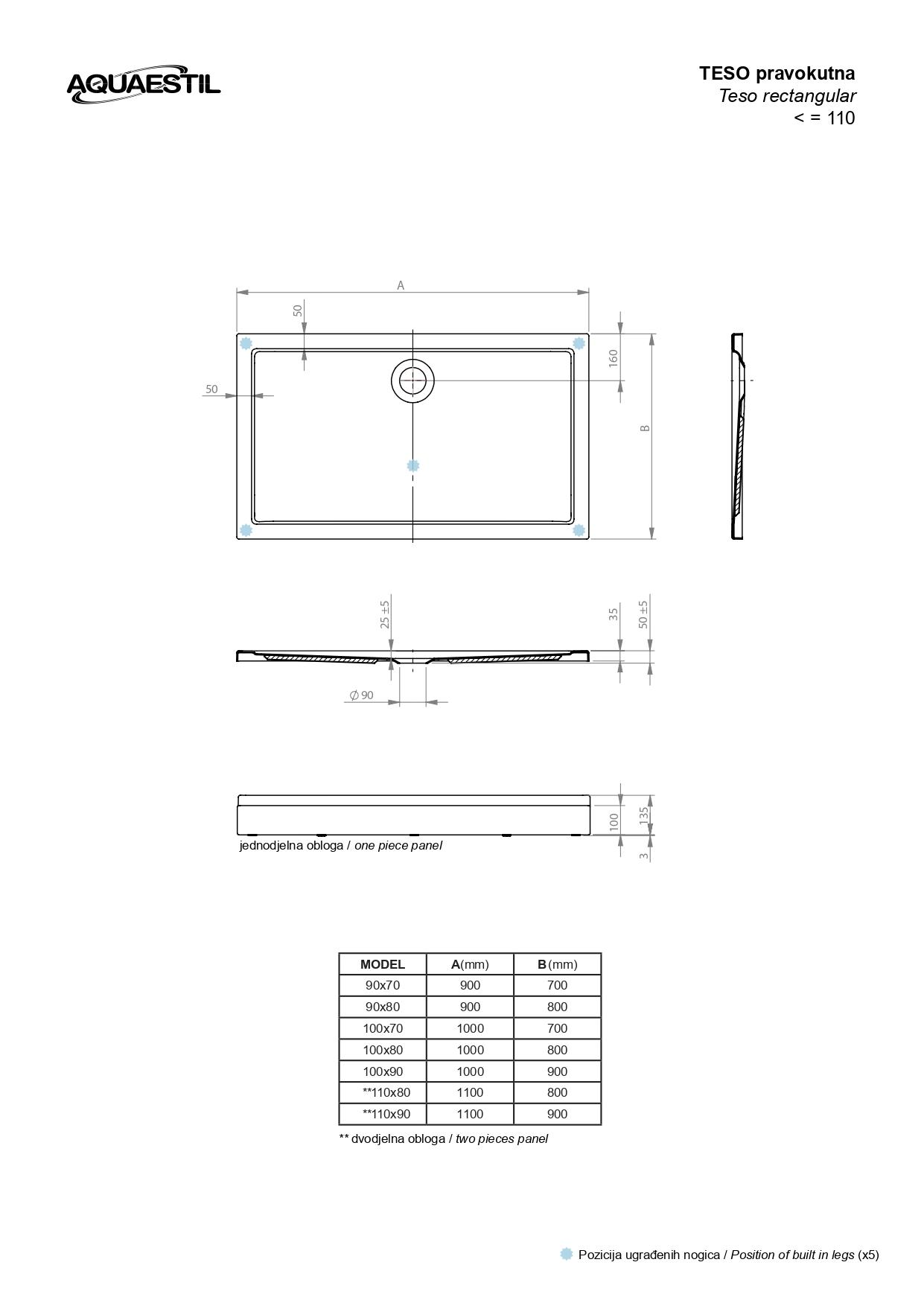 Teso je plitka tuš kada prvenstveno namijenjena ugradnji u razinu poda, ali je dostupna i u verziji s oblogom. Dostupna je u puno različitih dimenzija pa je idealna za gotovo sve kupaonske konfiguracije.
