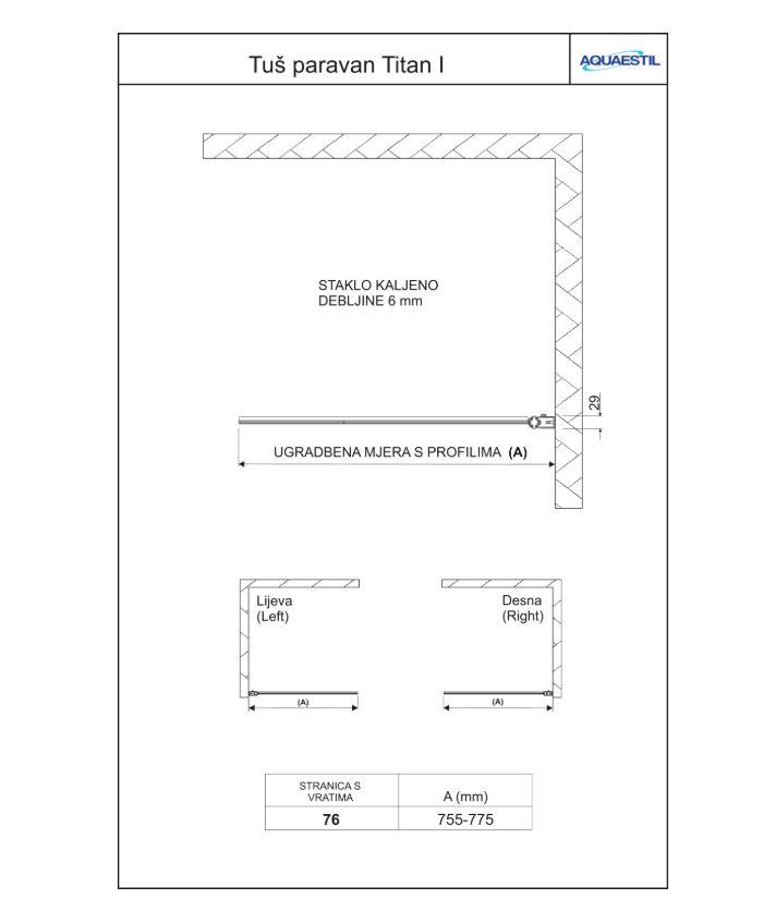 Titan I je univerzalni, jednokrilni stakleni tuš paravan za pravokutne kupaonske kade. U izvedbi s prozirnim staklom nije potrebno unaprijed znati na koji će se zid montirati. Paravan je moguće u potpunosti preklopiti u oba smjera.