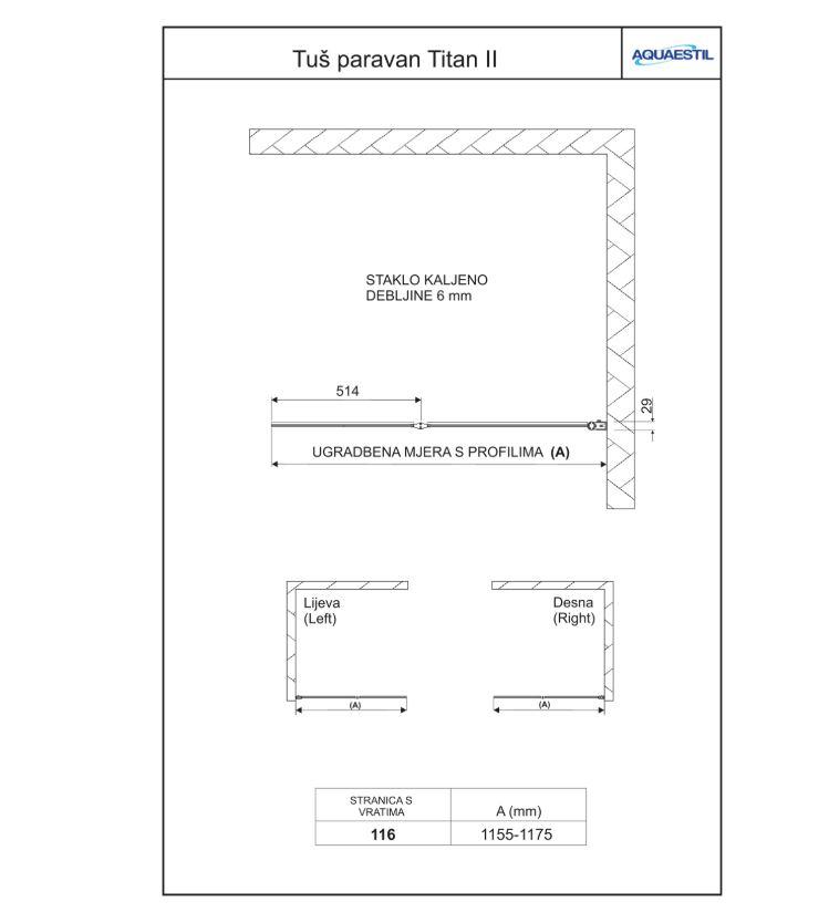 Paravan je univerzalan u verziji s prozirnim staklom, dok je u verziji s reljefnim staklom potrebno definirati orijentaciju prilikom narudžbe.