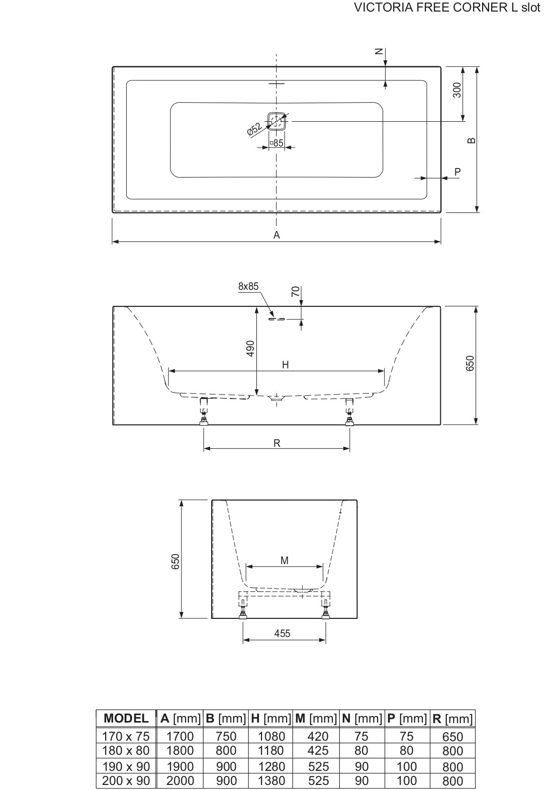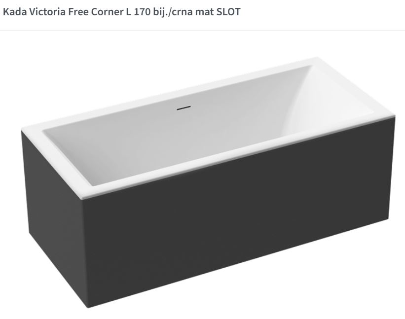 Victoria Free je serija pravokutnih kupaonskih kada čije su glavne karakteristike elegantan dizajn, udobnost i jednostavna montaža. Kupaonske kade ove serije izrađene su od kvalitetnog lijevanog sanitarnog akrila koji je ugodan na dodir, otporan, prirodno protuklizan te jednostavan za održavanje. Kupaonske kade Victoria Free dolaze s tvornički ugrađenim postoljem i preljevno-otočnom garniturom sa „slot” preljevom i „klik-klak” ventilom sifona. Svi elementi tvornički su sastavljeni te se kada isporučuje spremna za ugradnju u Vašu kupaonicu.