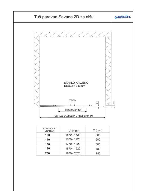 Aquaestil Tuš vrata Savana 2D za nišu 170, silver/proz. 685,00 € 548,00 €/KOM