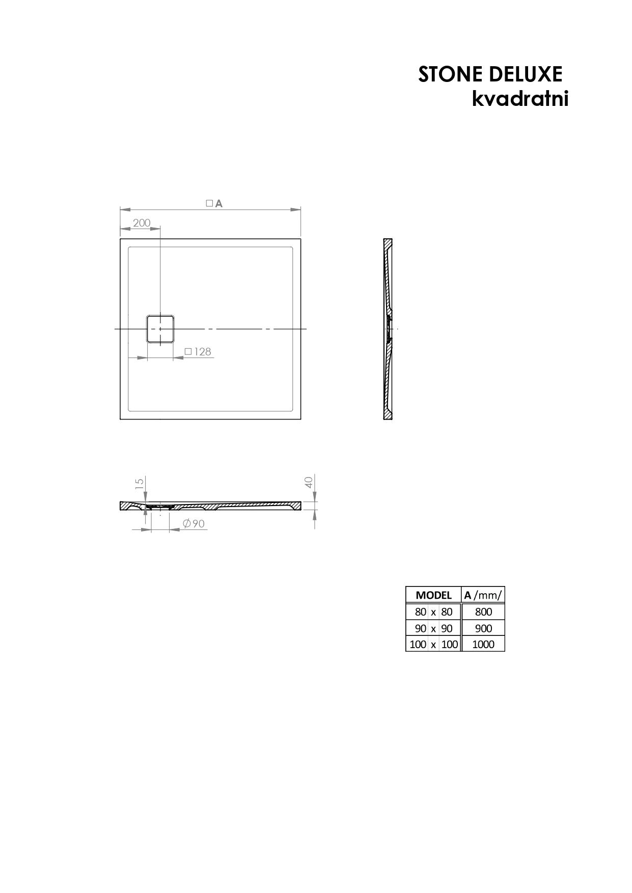 Tuš kade Stone DeLuxe od lijevanog mramora nude čvrstu i sofisticiranu površinu koja imitira beton u bijeloj, crnoj ili cement sivoj boji. Atraktivan poklopac sifona izveden u identičnom efektu kao i površina tuš kade pridonosi karakterističnom izgledu Stone DeLuxe tuš kada. Posebna prednost tuš kada Stone DeLuxe je mogućnost rezanja do određenih gabarita radi prilagodbe specifičnoj konfiguraciji prostora za tuširanje.