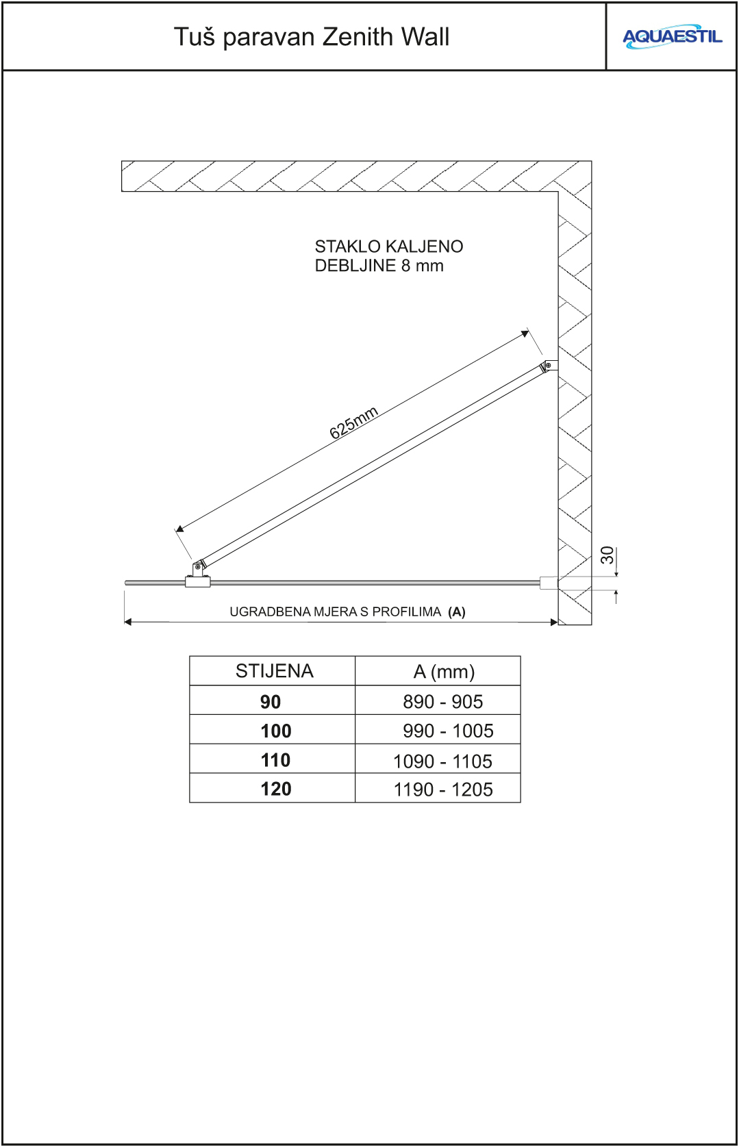 Paravan Zenith Wall dostupan je i u varijanti s kutnim fiksatorom u rasponu dimenzija od 90 do 120 cm širine.