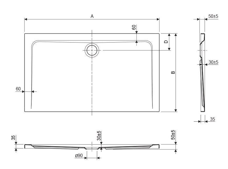 ARMAL ADAM PRAVOKUTNA PLITKA TUŠ KADA 120X90
