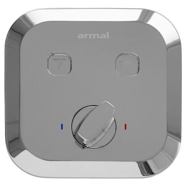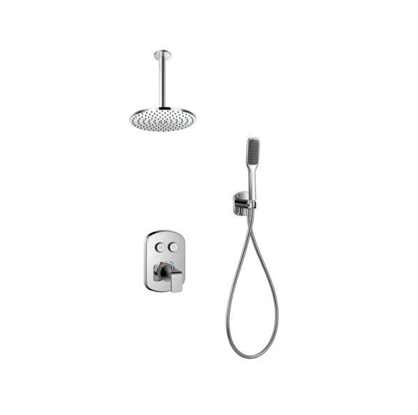 Termostatska, ručica tuša 1 vrsta mlaza, automatska blokada na 380 C, uključeno kućište (box), promjer glave 18,7 cm