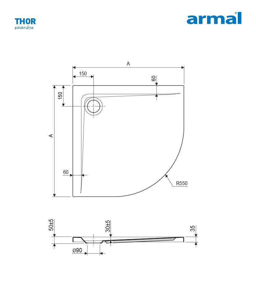 ARMAL THOR POLUKRUŽNA PLITKA TUŠ KADA 90x90