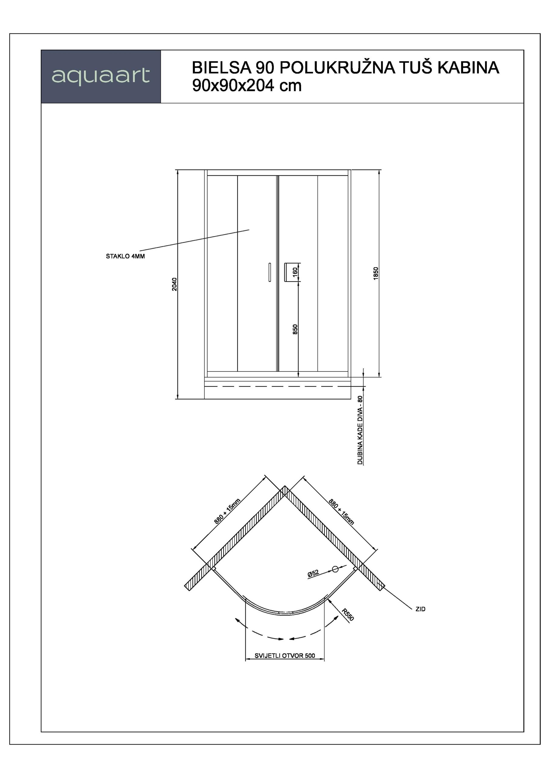 BIELSA 90 POLUKRUŽNA TUŠ KABINA 90x90x204 cm