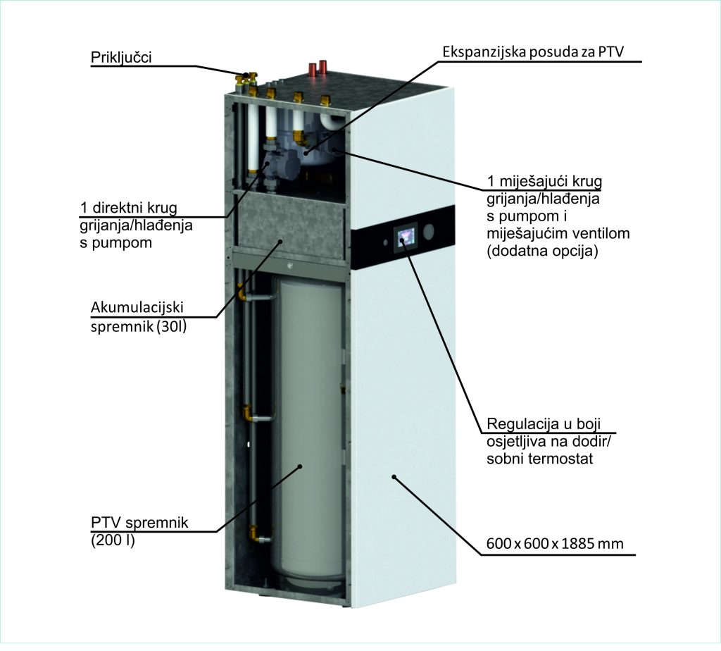 Može se spojiti na podno grijanje/hlađenje, ventilokonvektore i/ili niskotemperaturno radijatorsko grijanje