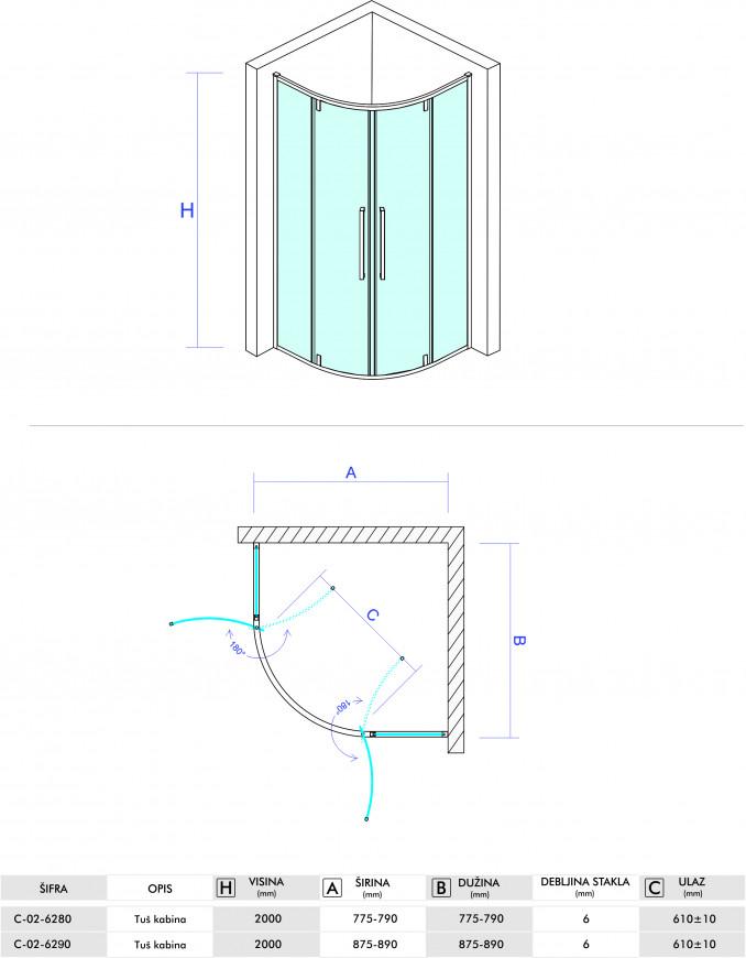 Tuš kabina CONCEPT ABSOLUT R800x2000 staklo 6mm prozirno sa zaokretnim vratima – bez tuš kade
