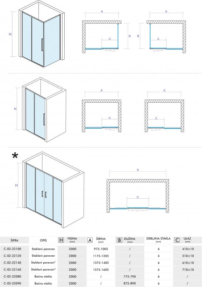 1 x CONCEPT DEVON200 TUŠ VRATA 1200×2000 staklo 6mm prozirno s tankim okvirom