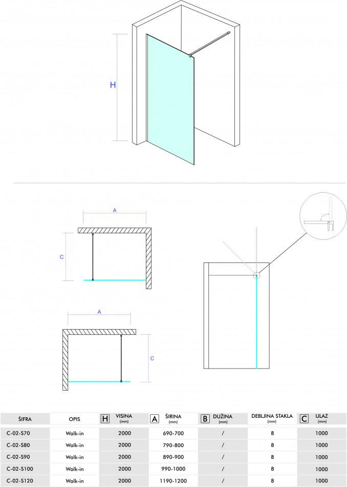 CONCEPT MONTE Stakleni paravan 700×2000 8mm staklo prozirno