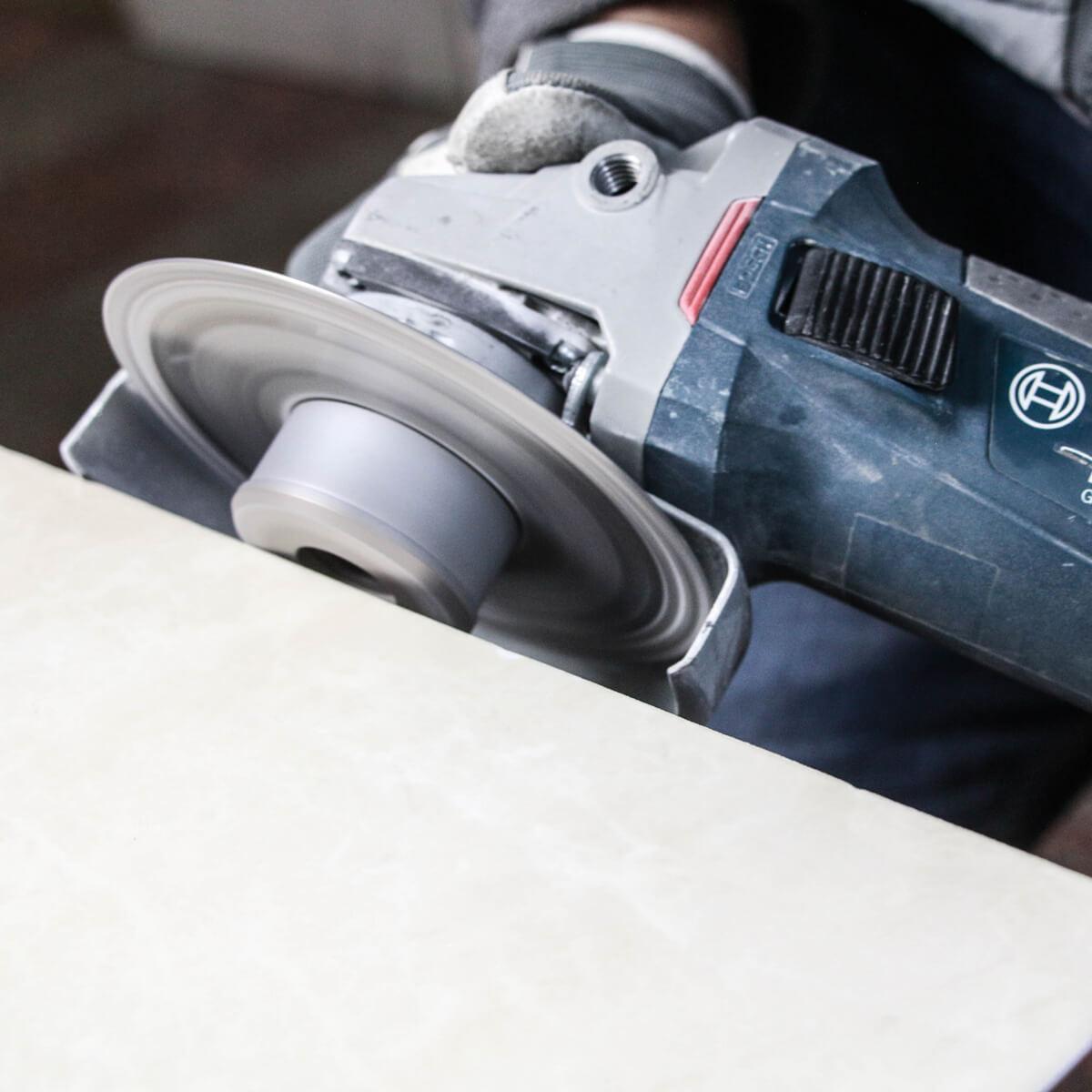 Dijamantni sloj na krajnjoj površini matice pretvara je u pravi dijamantni rezač. Ova shema omogućuje brušenje ruba keramičkih pločica odmah nakon rezanja. To čini proces nevjerojatno praktičnim i produktivnim. Učinkovito radi i sa zidnim keramičkim pločicama i izdržljivom kameninom.