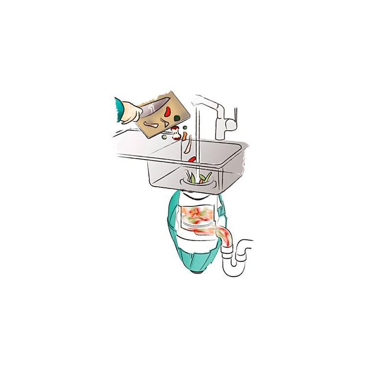 Komore za mljevenje napravljene od nehrđajućeg čelika i posebno prilagođene radu u doticaju s vodom. Sve plastične komponente oplemenjene su ionima srebra koji služe suzbijanju širenja bakterija. Time se znatno smanjuju neugodni mirisi koji se mogu pojaviti u nekim modelima drobilica.