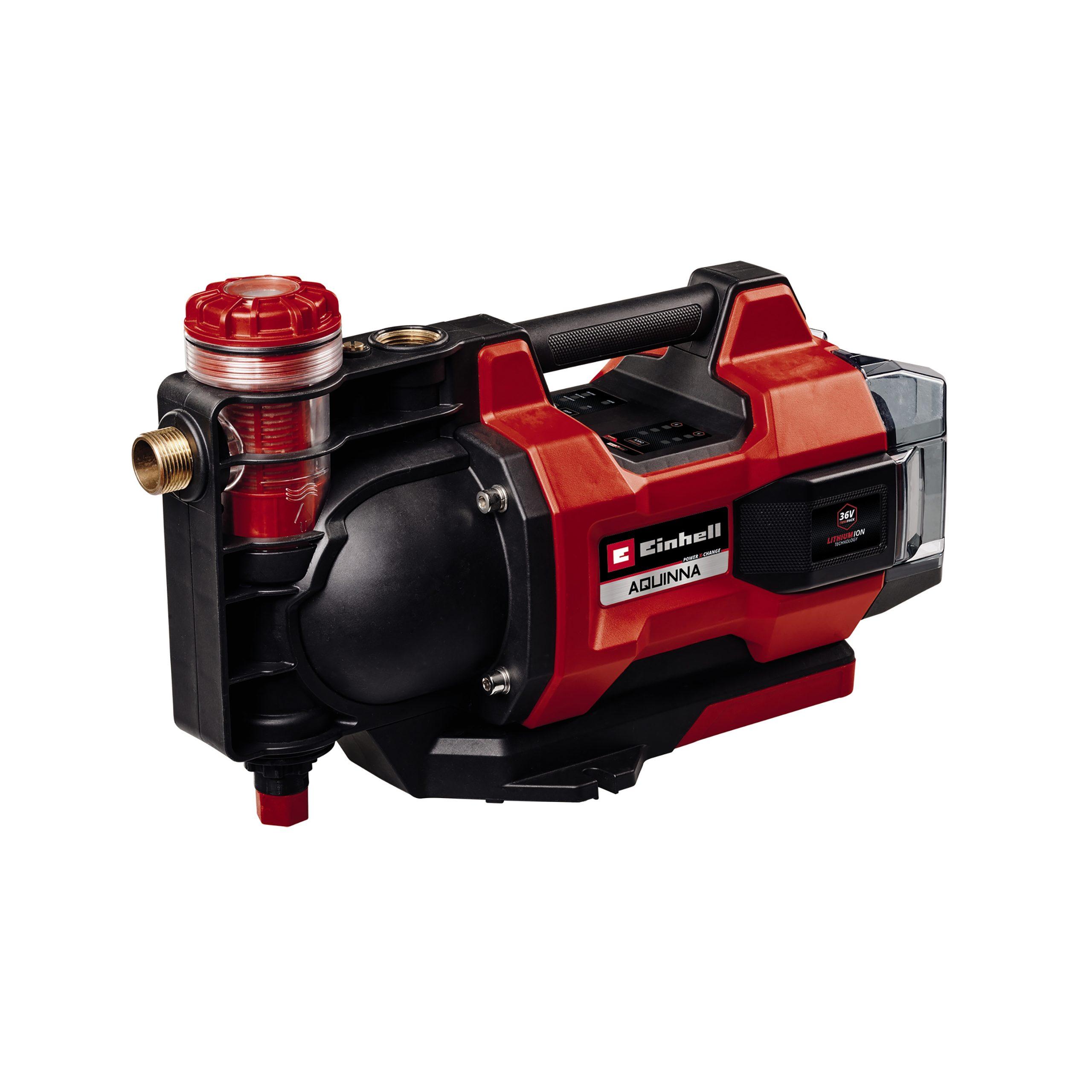Einhell akumulatorska automatska vrtna pumpa AQUINNA 36/38 F LED AUTOMATIC snažan je uređaj koji se koristi svugdje u kući i vrtu gdje se voda mora osigurati bez zasebnog priključka za struju. AQUINNA 36/35 F LED AUTOMATIC pumpa dio je fleksibilne obitelji Power X-Change, gdje se kombiniraju sve baterije, punjači i uređaji sustava uključujući alate i vrtnu opremu. Za maksimalne performanse, 36 V Twin-Pack tehnologija kombinira snagu dviju 18 V baterija. Kapacitet dviju baterija može se u svakom trenutku vidjeti na LED zaslonu razine napunjenosti. Integriran je i LED statusni zaslon koji pruža informacije o statusu pumpe i mogućim porukama o pogreškama. Automatska vrtna pumpa opremljena je s dva načina rada: BOOST način rada za maksimalnu isporuku i ECO način rada za maksimalno trajanje baterije s manjim pritiskom isporuke. Akumulatorska pumpa može ispumpati do 3800 litara vode na sat. Može doseći maksimalnu visinu isporuke od 37 metara, što odgovara maksimalnom pritisku isporuke od 3,7 bara. Voda se može usisati s dubine do 6 metara. Kolika je trenutna visina usisavanja i usisni tlak može se očitati na manometru. Integrirana tlačna sklopka automatski uključuje pumpu kada je potrebna voda i zatim je ponovno isključuje. Time se učinkovito produžuje trajanje baterije. Za jednostavno punjenje, npr. tijekom prvog procesa usisavanja, pumpa ima veliki vijak za punjenje vode. Stroj se jednostavno prazni, posebno za zaštitu od smrzavanja zimi, uz pomoć vijka za odvod vode na donjoj strani. Za zaštitu od onečišćenja, crpka je opremljena predfilterom. Okružen je prozirnim kućištem, što omogućuje otkrivanje u svakom trenutku je li pumpa dovoljno napunjena vodom i je li filtar zaprljan i treba ga očistiti. Nepovratni ventil također sprječava kapljanje vode. U slučaju pregrijavanja uređaj se automatski isključuje pomoću zaštite od preopterećenja kako bi se spriječilo oštećenje. Osim toga, pumpa je zaštićena sigurnosnim uređajem za rad na suho, koji automatski isključuje uređaj čim se više ne može usisati voda. Akumulatorska pumpa opremljena je središnjom ručkom za nošenje za lakši transport i rupama za pričvršćivanje za fiksiranje na stalnom mjestu uporabe. Pumpa je opremljena s dva robusna metalna navojna priključka. Isporuka ne uključuje bateriju ili punjač. Oni su dostupni zasebno kao starter set.