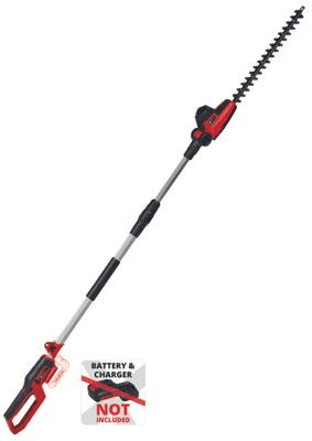 Einhell aku teleskopske škare za živicu GC-HH 18/45 Li T-Solo, član je fleksibilne i vrlo učinkovite Power X-Change obitelji iz Einhella. Njegove visokokvalitetne punjive baterije s njihovim li-ion ćelijama mogu se kombinirati sa svim sistemskim uređajima unutar PXC obitelji. Oštrice na škarama za živicu izrađene su od laserski rezanog i dijamantno brušenog čelika i dizajnirane su za maksimalnu duljinu rezanja od 410 mm i do 1400 rezova u minuti. Fleksibilnost se duguje glavi motora sa 7 postavki nagiba i zakretnom glavnom ručkom. Tu je i dodatno gumirano područje za držanje koje osigurava čvrsto i sigurno držanje, kao i remen koji također potiče ergonomsko rukovanje. Robusni metalni prijenos dizajniran je za dugi vijek trajanja. Ove aku teleskopske škare za živicu dolaze s dugačkom drškom tako da se mogu koristiti i na višim živicama. U isporuku je uključen čvrsti štitnik za oštricu za sigurno skladištenje i jednostavni transport. Ovaj proizvod dolazi bez baterije i bez punjača; oni su dostupni zasebno, kao npr. praktični Starter Kit (baterija i punjač).