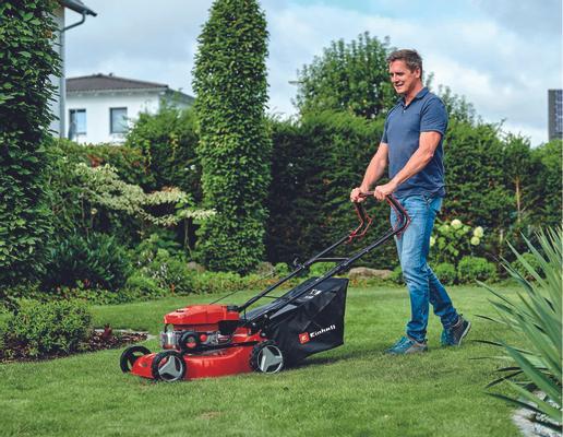 Einhell benzinska samohodna kosilica GC-PM 46/4 S robusna je, učinkovita i pouzdana pomoć u košnji velikih travnjaka. Njezin jednocilindrični četverotaktni motor generira veliki okretni moment, dok odvojen pogon na stražnjim kotačima osigurava kontinuirani napredak. Visina košenja se podešava centralno na devet razina za jednostavno i vrlo točno prilagođavanje potrebnoj visini košenja. Uže za pokretanje GC-PM 46/4 S lako je dohvatiti na dugoj ručki za pokretanje bez napora. Sklopiva dugačka ručka podesiva je po visini za dobru prilagodbu veličini korisnika, a ujedno omogućuje skladištenje kosilice na minimalnom prostoru. Njezino dugotrajno kućište izrađeno je od plastificiranog čelika. Otporna vreća za travu nudi prostor za duge radne sesije. Zahvaljujući indikatoru razine možete na prvi pogled vidjeti kada je vrijeme za pražnjenje košare. GC-PM 46/4 S preporučuje se za travnjake do 1400 m2.
