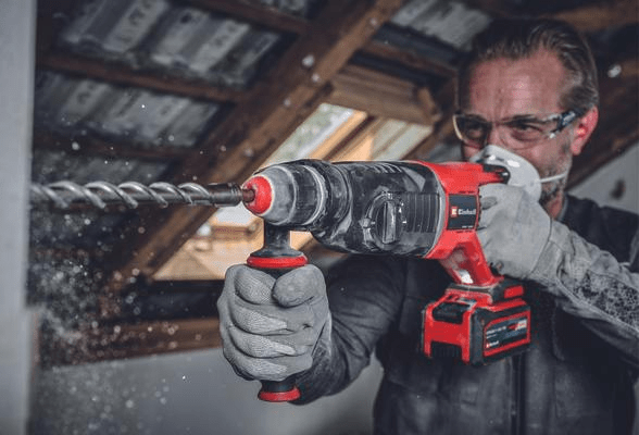 Einhell Professional akumulatorska udarna bušilica TP-HD 18/26 D Li BL-Solo pravi je svestrani alat. Kombinira četiri funkcije u jednom alatu: bušenje, bušenje čekićem i klesanje sa i bez zaustavljanja rotacije. Željeni način rada može se podesiti preko glavnog prekidača položaja. Srce uređaja je snažni Einhell PurePOWER motor bez četkica. Ovaj motor bez četkica nudi veću snagu i dulje vrijeme rada od konvencionalnih motora s karbonskim četkicama. Nakon online registracije, postoji 10 godina jamstva na motor bez četkica. Akumulatorski bušaći čekić dio je obitelji Power X-Change, omogućujući fleksibilnu kombinaciju baterija, alata i punjača. Pneumatski udarni mehanizam isporučuje do 2,6 džula udarne snage. Zahvaljujući visokom učinku bušenja, alat može bušiti rupe promjera do 26 mm u betonu. Posebno dizajnirana D-ručka omogućava bušenje i klesanje horizontalnih površina, npr. podovi, lakše. To znači da se rotacijski čekić može sigurno kontrolirati i da se može primijeniti pravi pritisak. Univerzalna poluautomatska SDS-Plus stezna glava omogućuje jednostavnu i brzu izmjenu alata. Brzina se može fino prilagoditi prema poslu koji se obavlja. Udoban za rukovanje bez izazivanja umora zahvaljujući ergonomskom dijelu ručke s mekanim rukohvatom. Robusni graničnik dubine bušenja za precizno bušenje je kontinuirano podesiv. Aku bušilica sa čekićem TP-HD 18/26 D Li BL uključuje LED svjetlo za optimalno osvjetljenje radnog područja. Alat dolazi u praktičnoj E-Case torbici za transport i skladištenje. Baterija i punjač nisu uključeni. Oni su dostupni zasebno. Za optimalan rad preporučuje se baterija od 3,0 Ah ili veća.