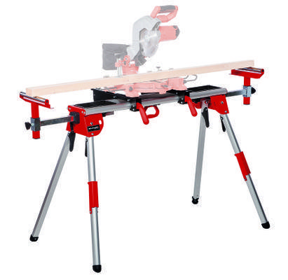 Einhell univerzalni stalak za potezne preklopne pile MSS 1610 unosi stabilnost u vašu radionicu. Čvrsta i pouzdana aluminijska konstrukcija je donji okvir za stacionarne alate kao npr. potezne pile: s jedne strane robusne i stabilne, s druge strane dovoljno lagane da se mogu koristiti kao pokretna podstruktura. Ovaj donji okvir je idealan za poslove na gradilištu ili u radionici. Moguća je montaža većih strojeva s nastavkom za montažne konzole (do 455 mm). Postoji jedna noga podesiva po visini, što jamči stabilno postolje, čak i na neravnom terenu. Zbog odvojivih nosača, montirani strojevi su još uvijek mobilni i mogu se postaviti na drugi radni stol. Za fiksiranje stopala koriste se ergonomske brze stezaljke, vrlo udobne i bez opasnosti od ozljeđivanja prstiju. Također bočni nastavci se mogu namjestiti brzim stezaljkama. Bočni nastavci opremljeni su valjcima za zaštitu izratka. Ovaj univerzalni stalak za preklopne pile nudi dodatne značajke koje pomažu korisniku, kao na primjer dvije stezaljke za pohranu izratka na prednjim nogama ili dvije kutije koje su uključene u glavni stol za pohranjivanje malih dijelova kao vijaka ili čavala. Sve u svemu, dobro osmišljen predmet za vašu radionicu.