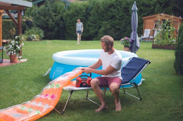 Einhell akumulatorski kompresor PRESSITO 18/21 nikada ne ostaje bez zraka. Ima razne namjene, od napuhavanja do ispuhavanja. Ovaj kompresor je član Power X-Change obitelji: PXC baterija se može koristiti u svim uređajima iz sustava. Zahvaljujući visokotlačnoj pumpi, akukompresor se može koristiti za napuhavanje automobilskih guma, biciklističkih guma i lopti; s druge strane, njegova niskotlačna pumpa može se koristiti za napuhavanje zračnih madraca (a kasnije i za ispuhivanje u niskotlačnom načinu usisavanja). Aku kompresor je opremljen digitalnim indikatorom tlaka dizajniranim za jednostavan ručni rad; možete birati između jedinica Bar, PSI i kPa. Tlak koji vam je potreban može se postaviti na visokotlačnoj pumpi. Ostale praktične značajke uključuju funkciju automatskog isključivanja nakon postizanja odabranog tlaka i tipku za napuhavanje u visokotlačnom rasponu bez prethodno podešenog tlaka. Ovaj akumulatorski kompresor dolazi s pretincem za 3-dijelni set adaptera. Za rad je potrebna jedna baterija od 18 V. Ovaj proizvod dolazi bez baterije ili punjača. Dostupni su zasebno, na primjer kao praktični Einhell PXC Starter Kit.
