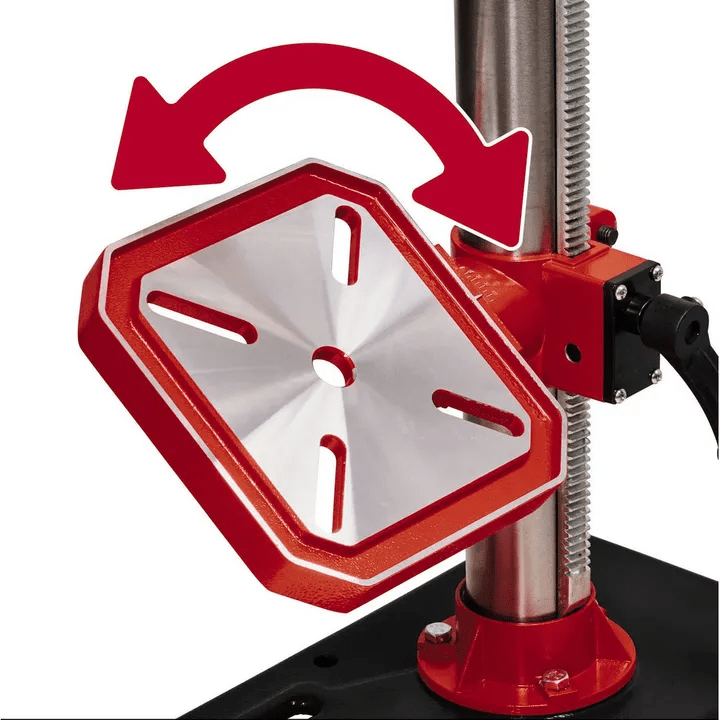 Podesivi graničnik dubine omogućuje ti precizno bušenje do maksimalne dubine od 60 mm. Opremljena je čvrstom zupčastom steznom glavom i MK2 utičnicom, što omogućuje korištenje različitih vrsta svrdala od 1,5 mm do 16 mm. Vreteno s kugličnim ležajem osigurava dugotrajan i glatki rad. Visinu stola za bušenje možeš kontinuirano prilagoditi, a stol se može zakrenuti do 90° i nagnuti do 45°, pružajući fleksibilnost u radu.