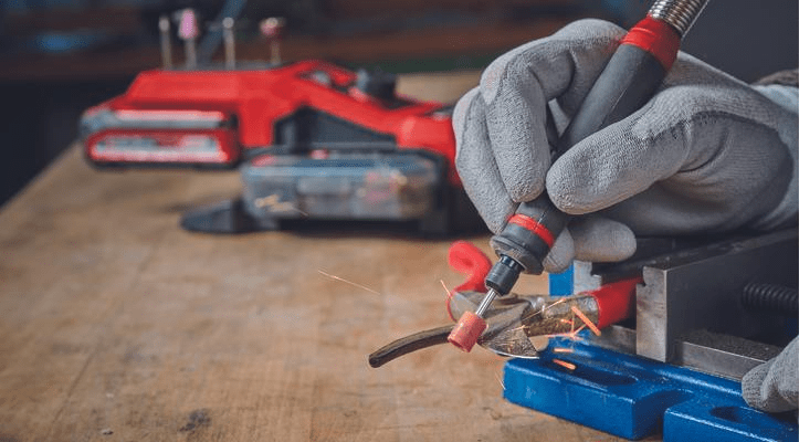 Svestrani Einhell akumulatorski alat za brušenje i graviranje TE-MT 18/34 Li-Solo može se koristiti za širok raspon zadataka kao što su graviranje, poliranje, glodanje, brušenje, rezanje i četkanje. Bežični dio Einhell Power X-Change obitelji za brušenje i graviranje, gdje se sve baterije, punjači i uređaji sustava mogu fleksibilno kombinirati. Uz kontinuirano promjenjivu elektroniku brzine, izlaz se može prilagoditi svakoj situaciji i svakom materijalu – pri brzinama od 5.000 do 34.000 o/min. Gumb za zaključavanje omogućuje jednostavnu i udobnu promjenu alata. Precizni rezultati, čak i za detaljne zadatke ili složene gravure, mogući su zahvaljujući klinu na 92 ??cm dugoj, fleksibilnoj osovini. Igla za graviranje optimalno leži u ruci zahvaljujući svom uskom dizajnu s površinama s mekanim rukohvatom. Osnovna stanica alata za brušenje i graviranje uključuje praktični držač za dršku i olovku, kao i držač pribora za često korišteni pribor i odvojivu kutiju za pribor pričvršćenu na kućište. Ovisno o zadatku, bazna stanica se može nositi izravno na tijelu s 150 cm dugom trakom za nošenje, objesiti pomoću zidnog nosača radi uštede prostora ili sigurno postaviti zahvaljujući gumiranim nožicama. Isporuka također uključuje opsežan set pribora od 55 dijelova, s kojim jedva da postoje ograničenja za univerzalne primjene svih vrsta. Akumulatorski alat za brušenje/graviranje TE-MT 18/34 Li-Solo isporučuje se bez baterije i punjača. Oni su dostupni odvojeno, npr. kao praktičan početni set.