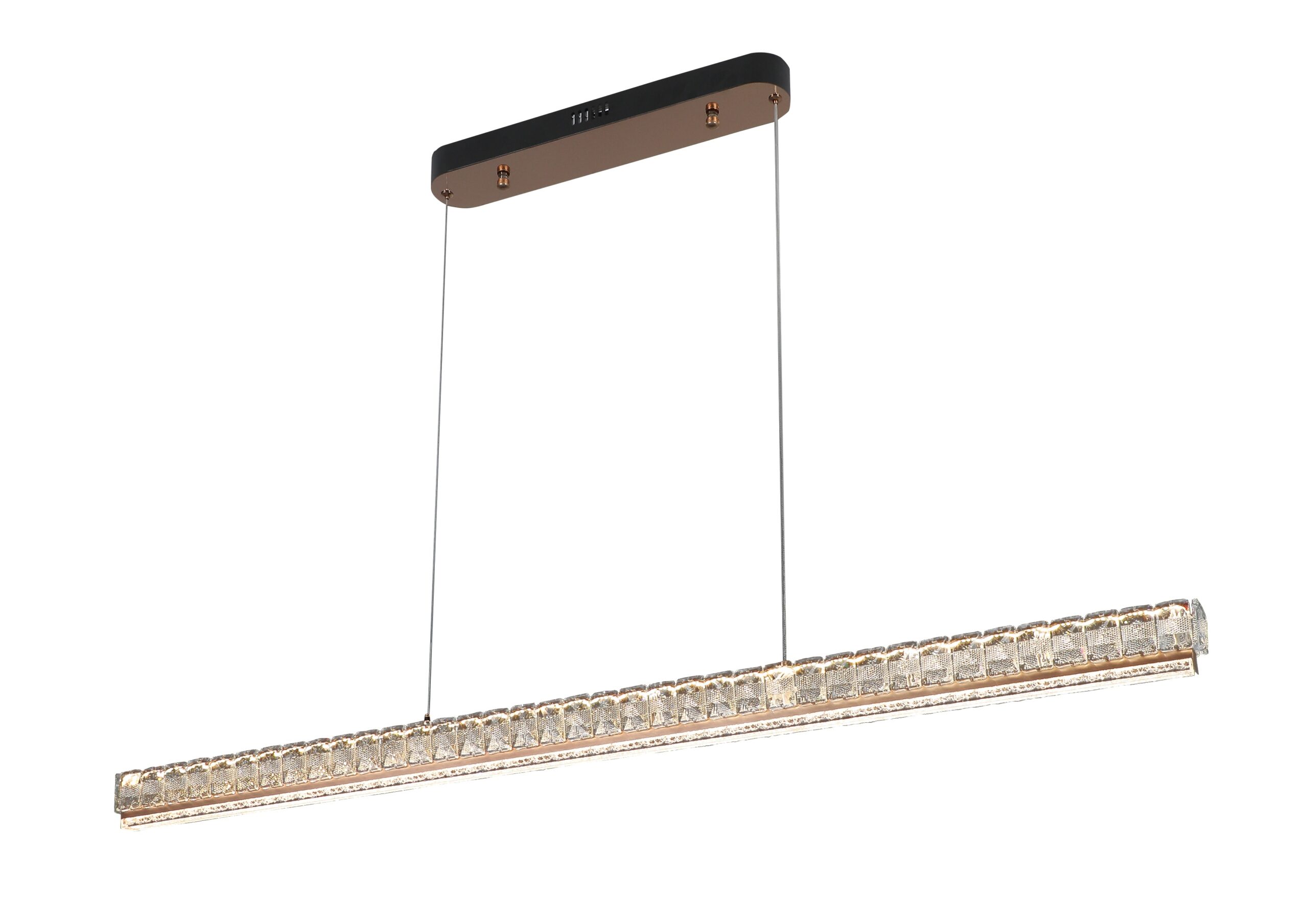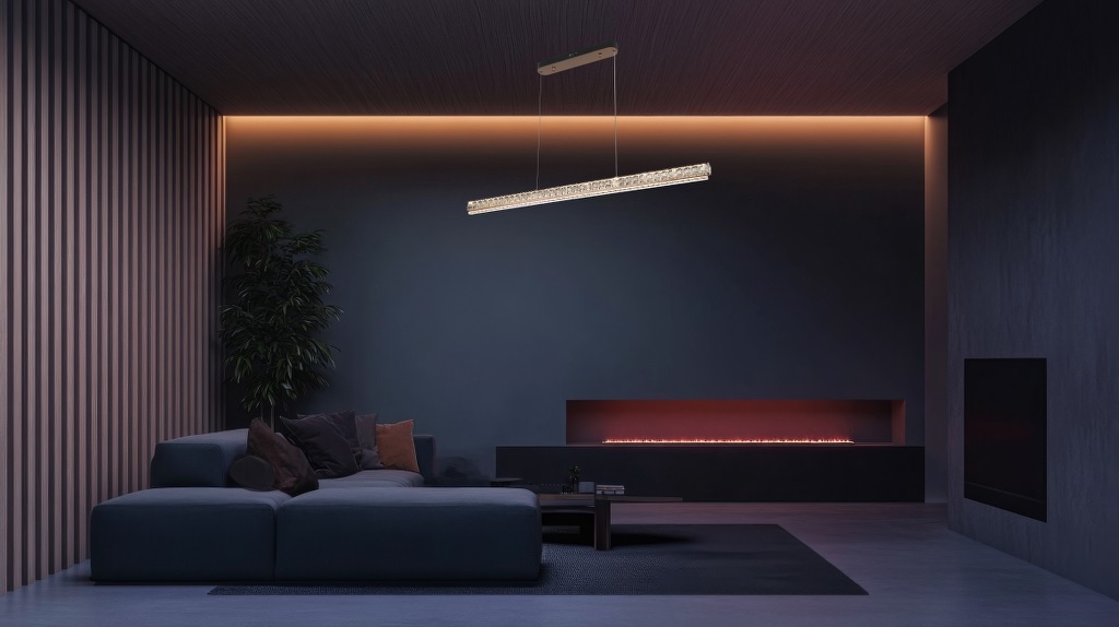 VEREN LED viseća rasvjeta donosi linearni sjaj s kristalnom teksturom koja bez napora reflektira svjetlost. Njen minimalistički oblik u kontrastu je s bogatim detaljima, stvarajući upečatljivu žarišnu točku iznad blagovaonskog stola ili u prostranim dnevnim boravcima. Suptilna, a opet odvažna – VEREN stvara atmosferu koja traje. S CCT tehnologijom i funkcionalnošću DIP prekidača, temperatura svjetla može se podesiti – od toplih do neutralnih ili hladnih tonova, ovisno o raspoloženju.