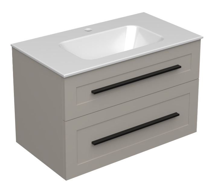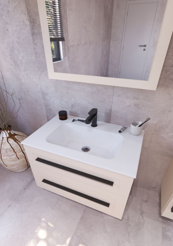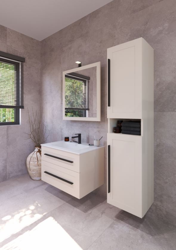 ETERNITY 80 donji kupaonski ormarić u kašmir boji s crnom ručkicom pruža suvremen i sofisticiran izgled vašoj kupaonici. Kašmir boja stvara smirenost, dok crna ručkica unosi moderan kontrast i dinamičnost u dizajn. Ovaj ormarić savršeno se uklapa u moderne kupaonice koje traže funkcionalnost, uz naglasak na stil.