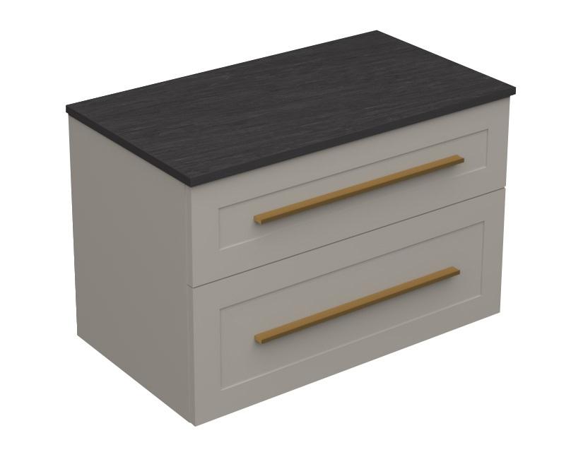ETERNITY 80 donji kupaonski ormarić u kašmir boji sa zlatnom ručkicom i pločom Scivaro škriljevac nudi luksuzan dizajn uz funkcionalnost. Kašmir boja unosi toplinu, dok zlatna ručkica stvara sofisticiran kontrast. Ploča Scivaro škriljevac pruža dugotrajan i otporan materijal, idealan za kupaonice koje traže spoj luksuza i izdržljivosti.