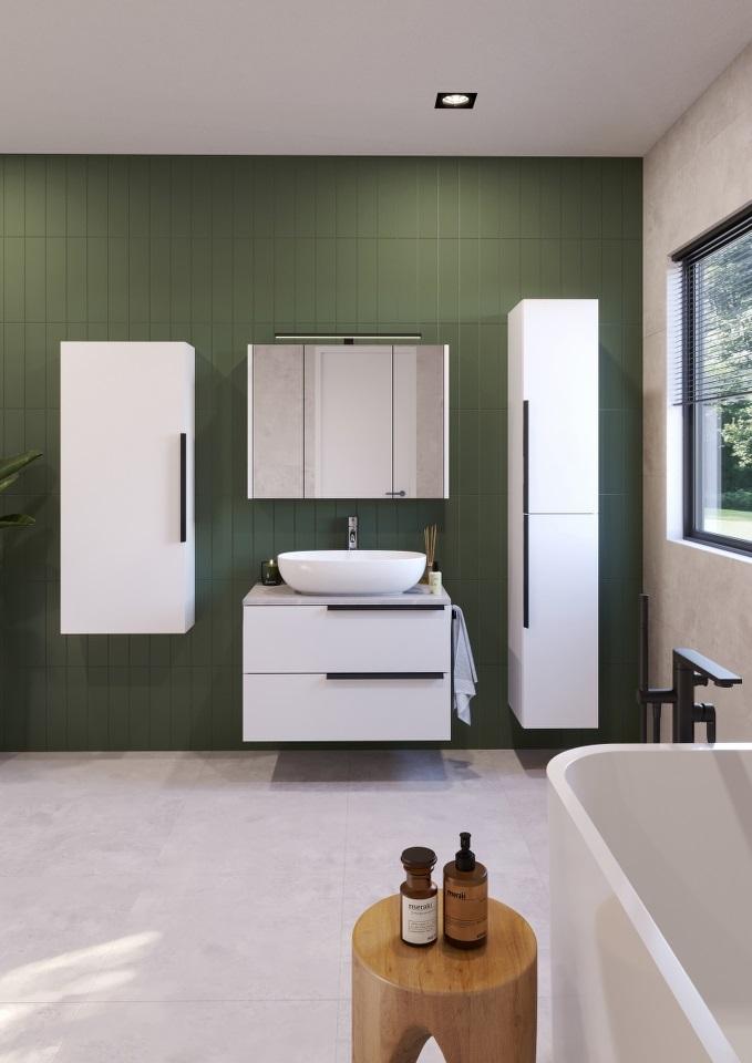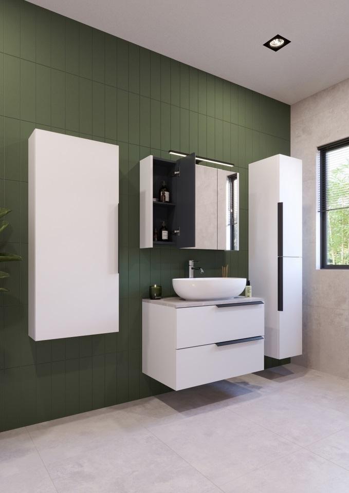 LATERAL 80 donji kupaonski ormarić u bijelom sjaju s pločom Candela mramor i integriranim držačem za ručnik spaja elegantan dizajn i funkcionalnost. Bijela sjajna površina unosi svježinu u prostor, dok ploča Candela mramor pruža luksuzan i dugotrajan materijal. Držač za ručnik omogućuje jednostavno i praktično odlaganje ručnika, održavajući kupaonicu organiziranom i urednom. Ovaj ormarić pruža obilje prostora za pohranu svih vaših kupaonskih potrepština, čineći prostor funkcionalnim i elegantnim.