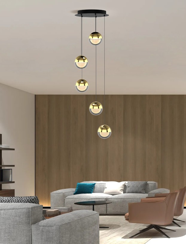 LUMINIS 5 unosi toplinu i ritam u prostor. Pet svjetlosnih površina u brušenom zlatnom finišu raspoređeno je u kompoziciji koja prostorno definira i obogaćuje interijer. Toplo osvjetljenje (3000K) i izraženija prostorna prisutnost čine ga snažnim vizualnim akcentom u suvremenim prostorima.
