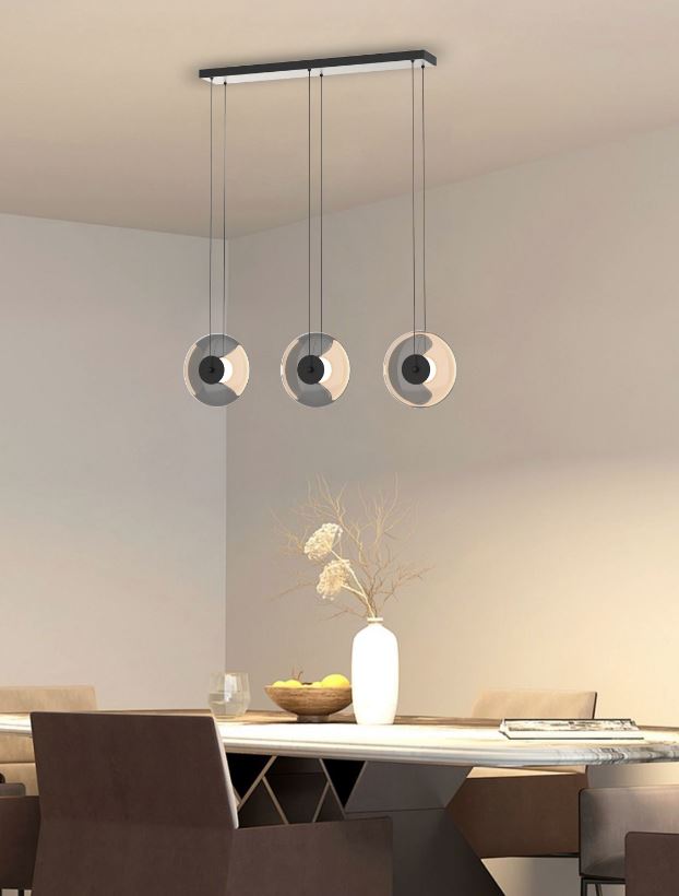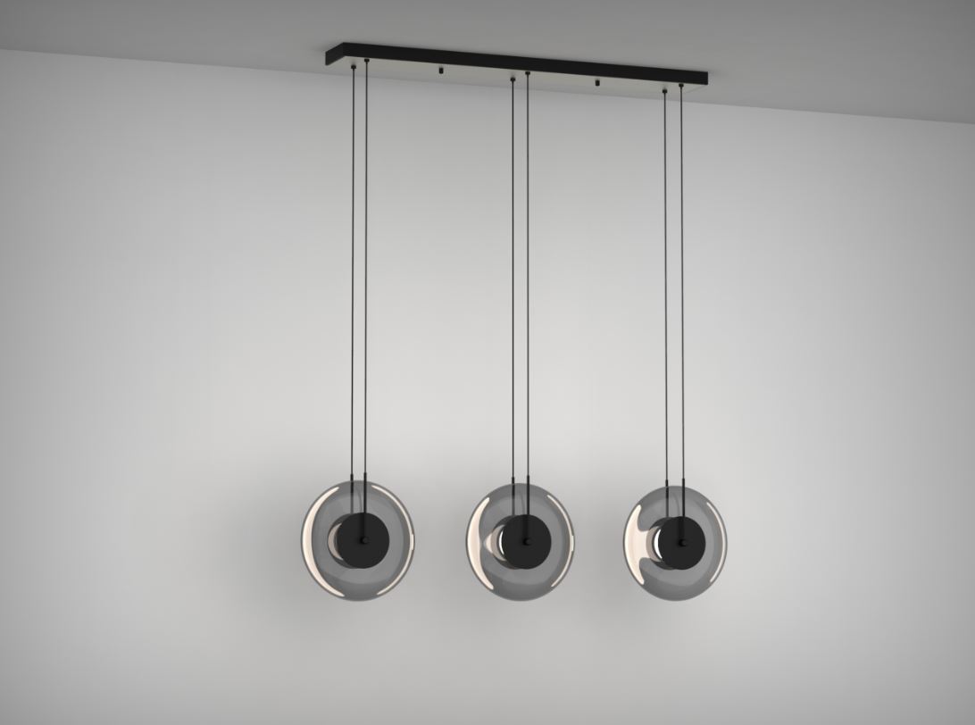 SOLARA 3 predstavlja prostornu kompoziciju od tri plutajuća svjetlosna prstena. Fino zategnuti ovjes i mat crna završna obrada prenose osjećaj lakoće, dok toplo ambijentalno svjetlo (3000K) definira i obogaćuje interijer. Element koji unosi ritam i slojevitost u suvremene prostore.