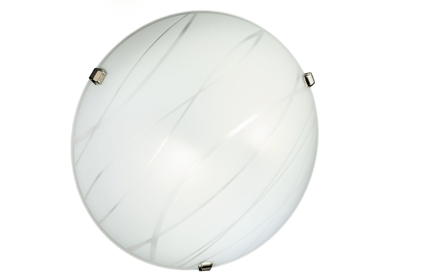 Bijela staklena okrugla plafonjera s uzorkom.