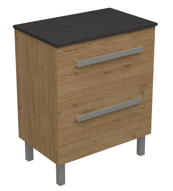 SARA 70 donji kupaonski ormarić u hrast natural dekoru s pločom Scivaro škriljevac nudi toplinu prirodnog drva u kombinaciji s modernim materijalima. Ploča Scivaro škriljevac dodaje sofisticiranost, dok hrast pruža prirodnu ljepotu i dugotrajan dizajn.