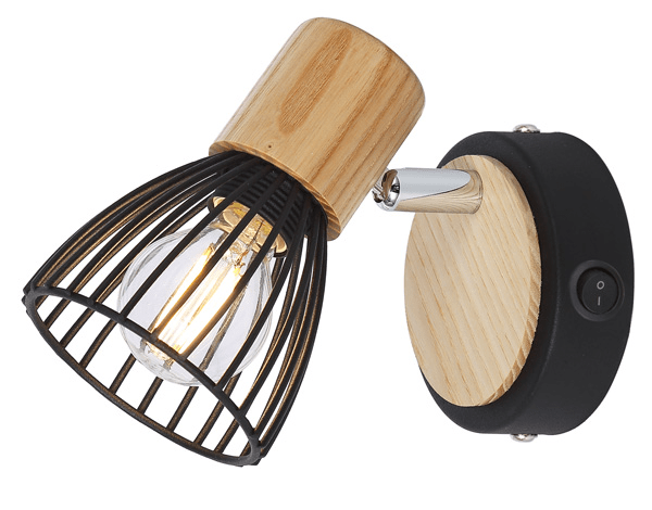 Metalni spot u boji drva i crnoj boji s prekidačem te željeznim crnim sjenilom.